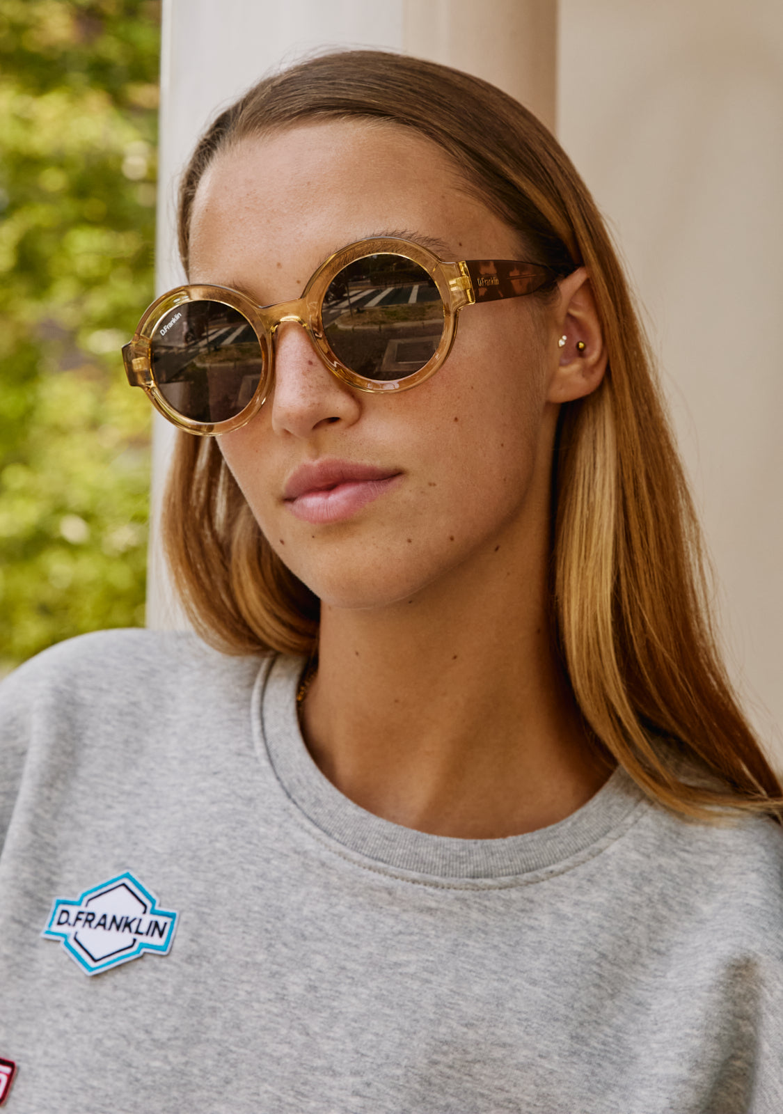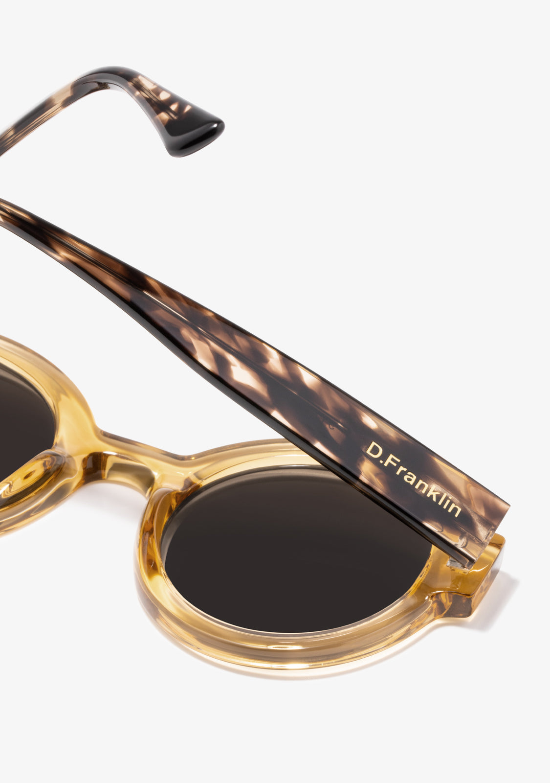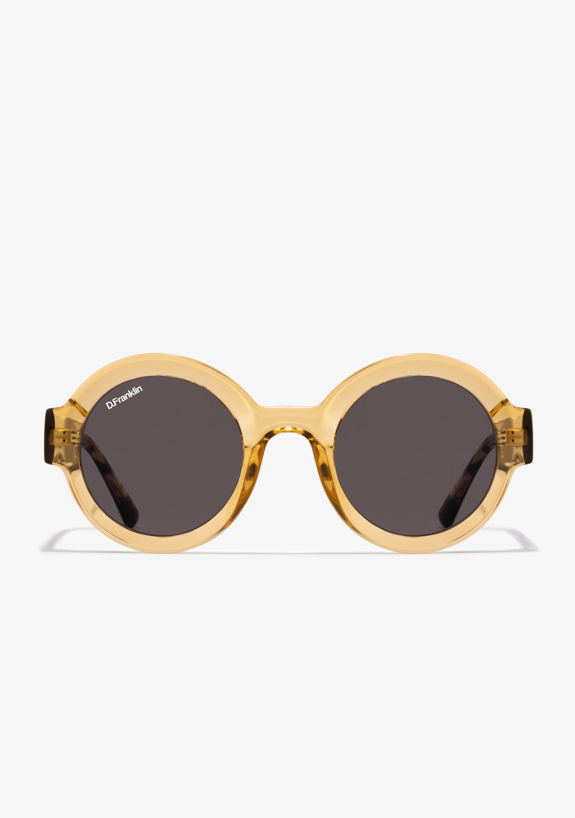Lentes de sol con montura redonda y acabado transparente en tonos marrones. Una pieza distintiva para tus estilismos más arriesgados.