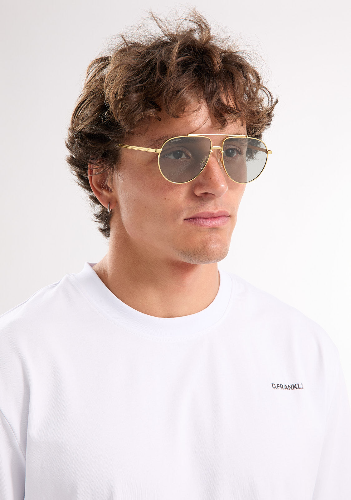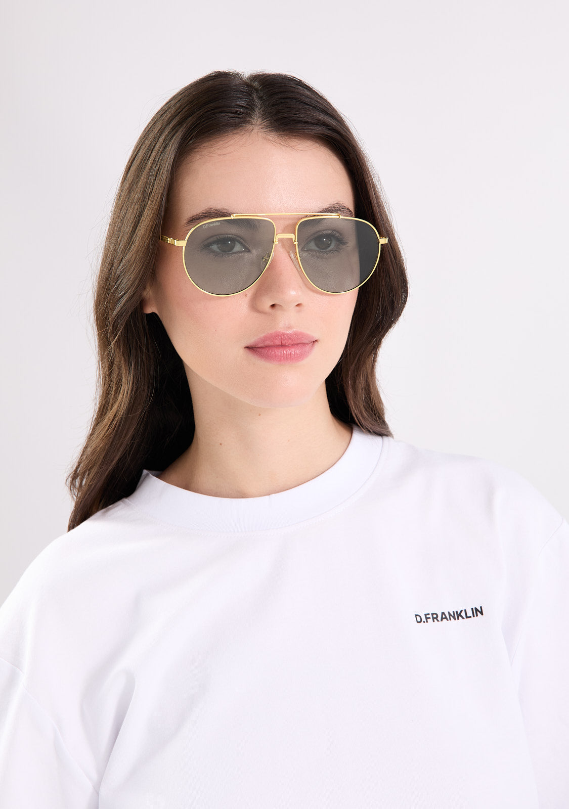 Las Aviator LX Gold / Photochromic G15 de D.Franklin combinan diseño clásico con innovación tecnológica, ofreciendo una experiencia única en gafas de sol. Su frontal, puente y varillas fabricados en metal garantizan durabilidad y un ajuste cómodo, adaptándose a diferentes formas de rostro.