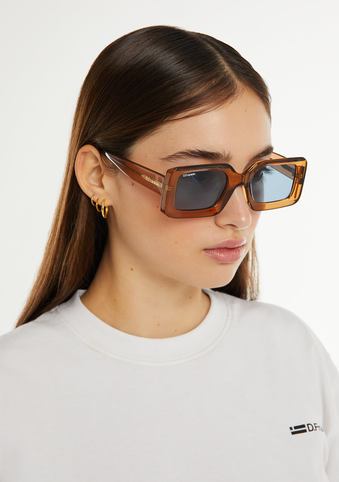 Nuestro modelo Bahamas en tonos marrones cuenta con los detalles distintivos de la marca D.Franklin, el logo grabado en las patillas y el emblema en la lente. El ancho de lente es de 51 mm y su frontal de 146 mm. Las varillas laterales tienen una longitud de 145 mm.