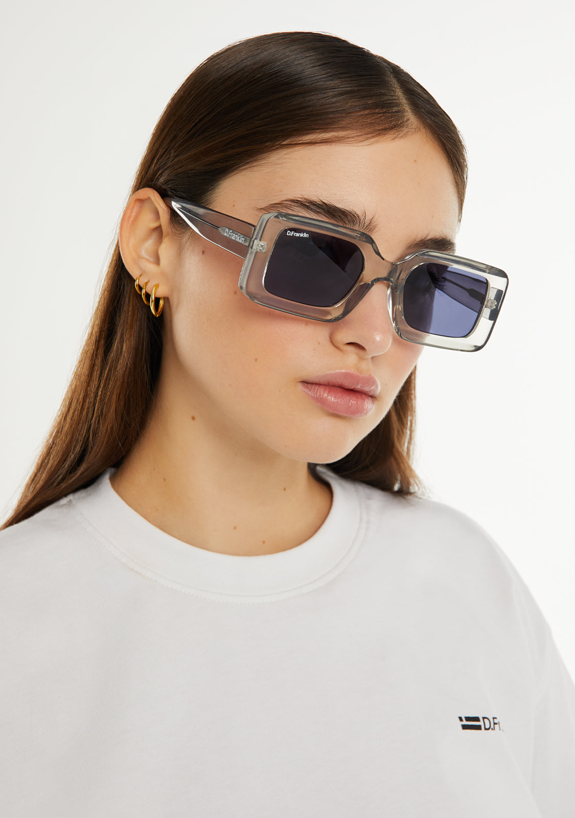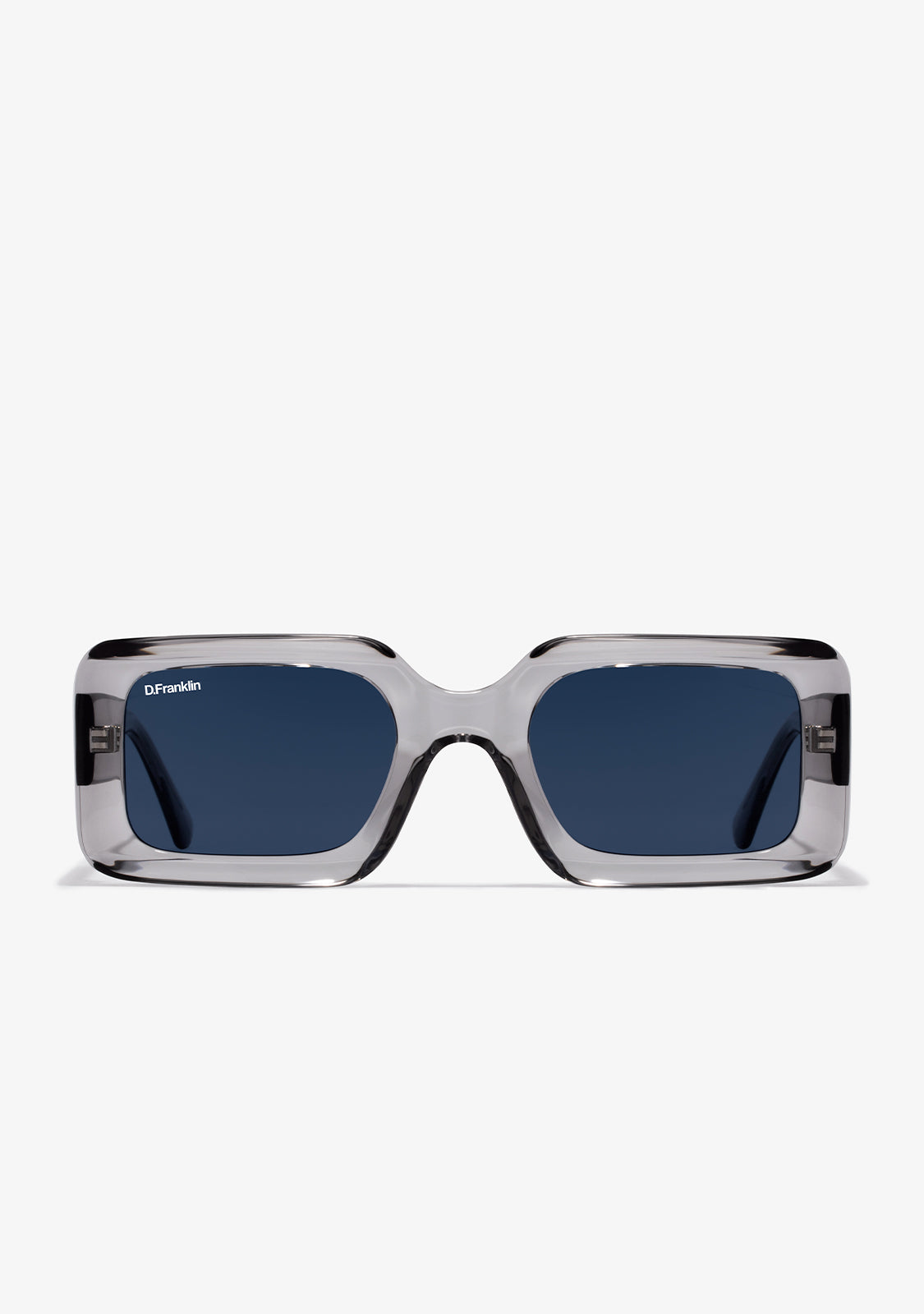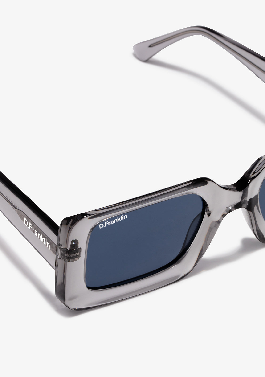 Nuestro modelo Bahamas en tonos grises cuenta con los detalles distintivos de la marca D.Franklin, el logo grabado en las patillas y el emblema en la lente. El ancho de lente es de 51 mm y su frontal de 146 mm. Las varillas laterales tienen una longitud de 145 mm.
