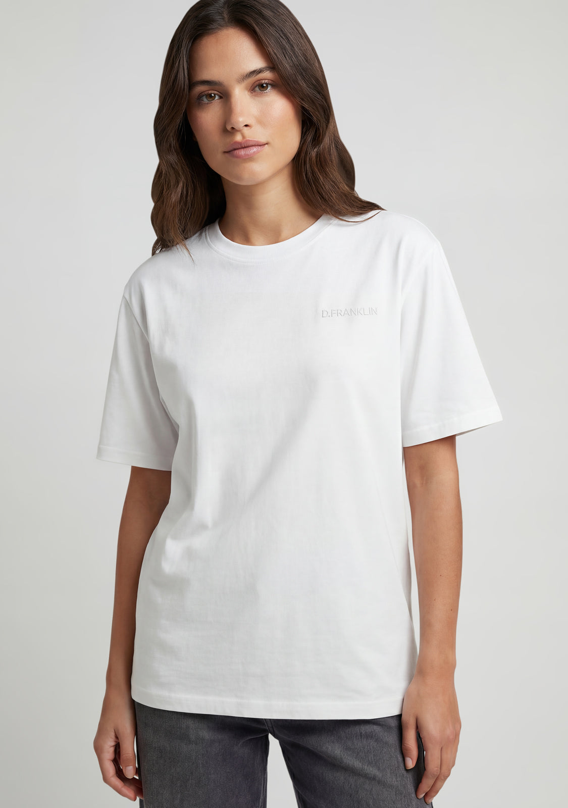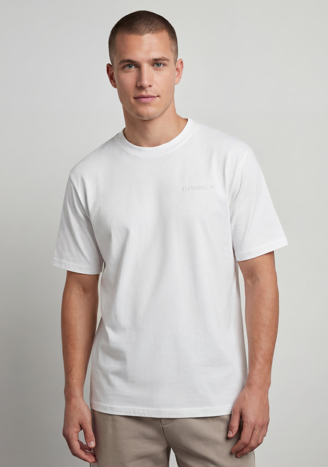 La Basic T-Shirt White de D.Franklin es una camiseta unisex que ofrece un diseño minimalista y moderno. Confeccionada en 100 % algodón con un gramaje de 230 g/m², esta camiseta ofrece una sensación suave y ligera, perfecta para cualquier ocasión.