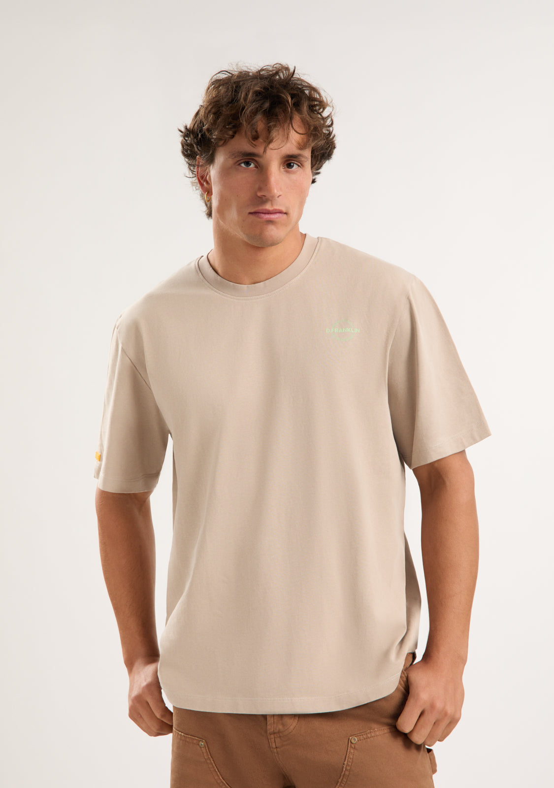 El diseño de la camiseta destaca por su estampado tanto en el frontal como en la espalda, añadiendo un toque moderno y lleno de personalidad. Además, cuenta con una etiqueta de goma en la manga, un detalle exclusivo que marca la diferencia.