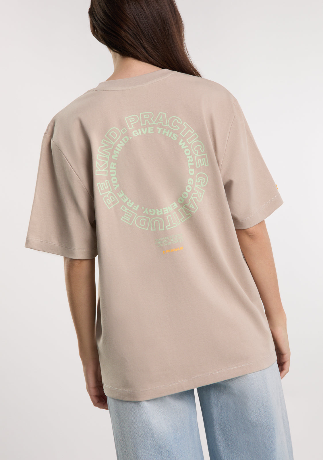 La Be Kind T-Shirt Grey de D.Franklin es la camiseta ideal para quienes buscan estilo y comodidad. Confeccionada en 100% algodón y 230 GMS, esta prenda ofrece una textura suave y transpirable que te acompañará durante todo el día. Su corte suelto y el cuello redondo brindan un ajuste relajado y versátil, perfecto para cualquier momento.