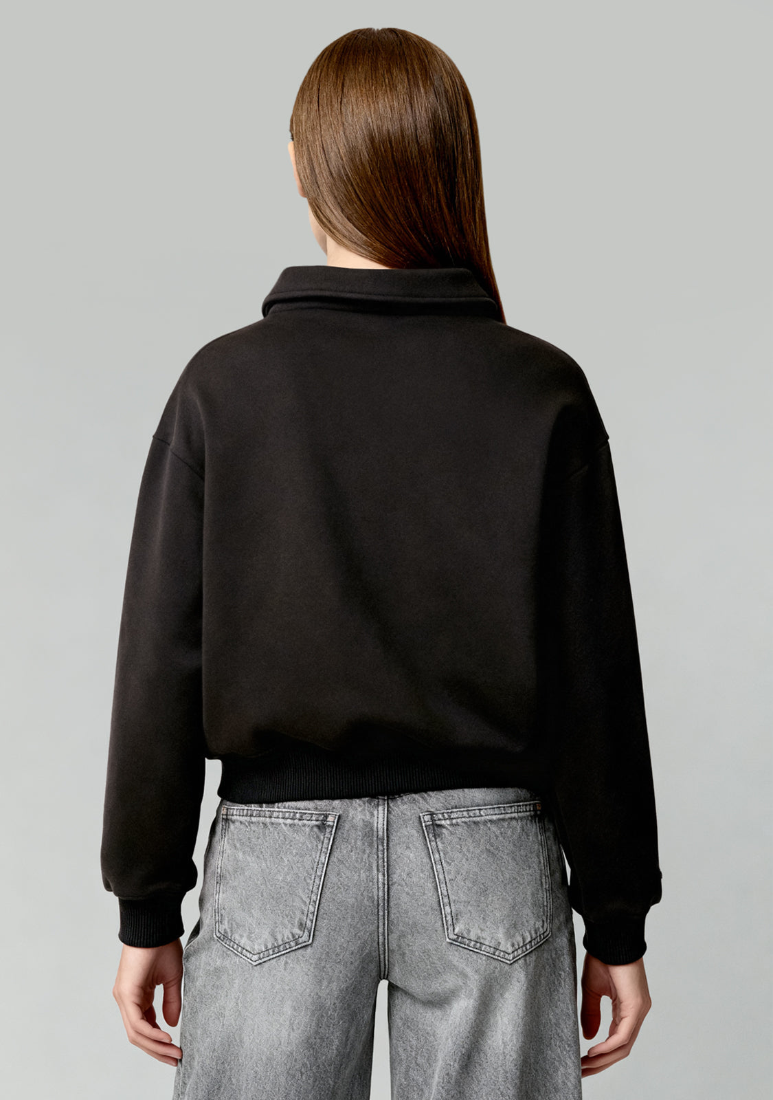 Cropped Polo Sweatshirt Anthracite es una sudadera para mujer que reinventa un corte clásico con un toque moderno. Su largo corto y cuello polo la convierten en una prenda destacada, ideal para ocasiones formales o informales.