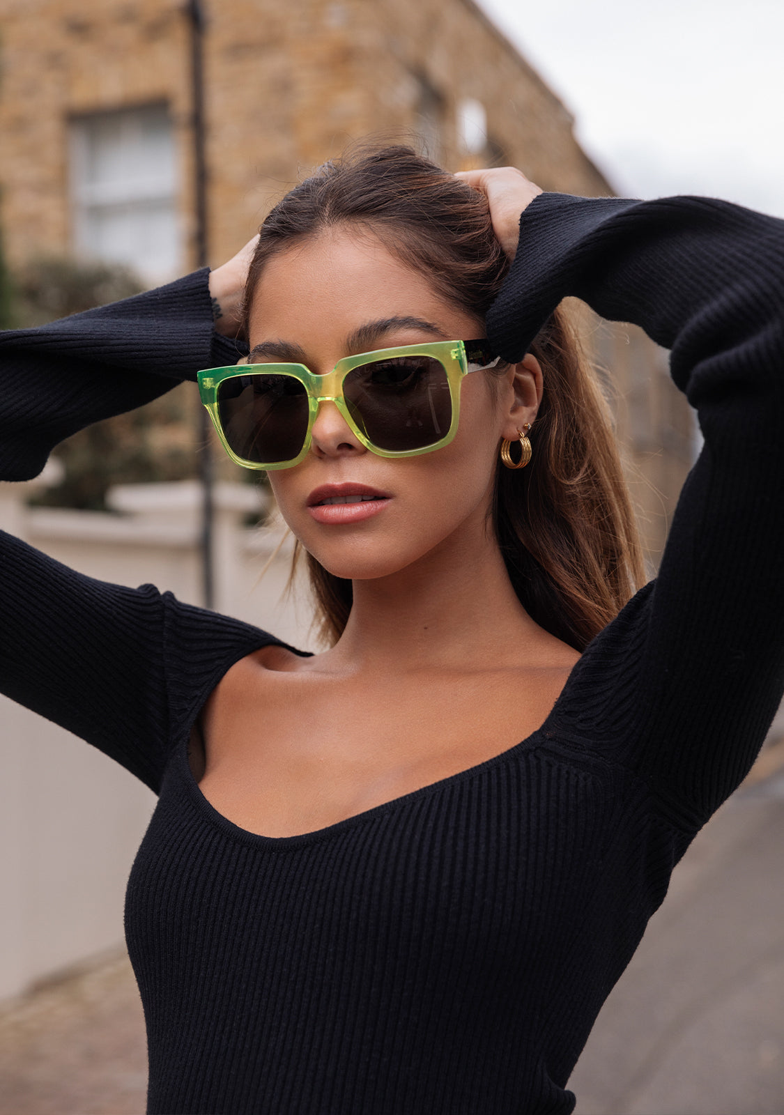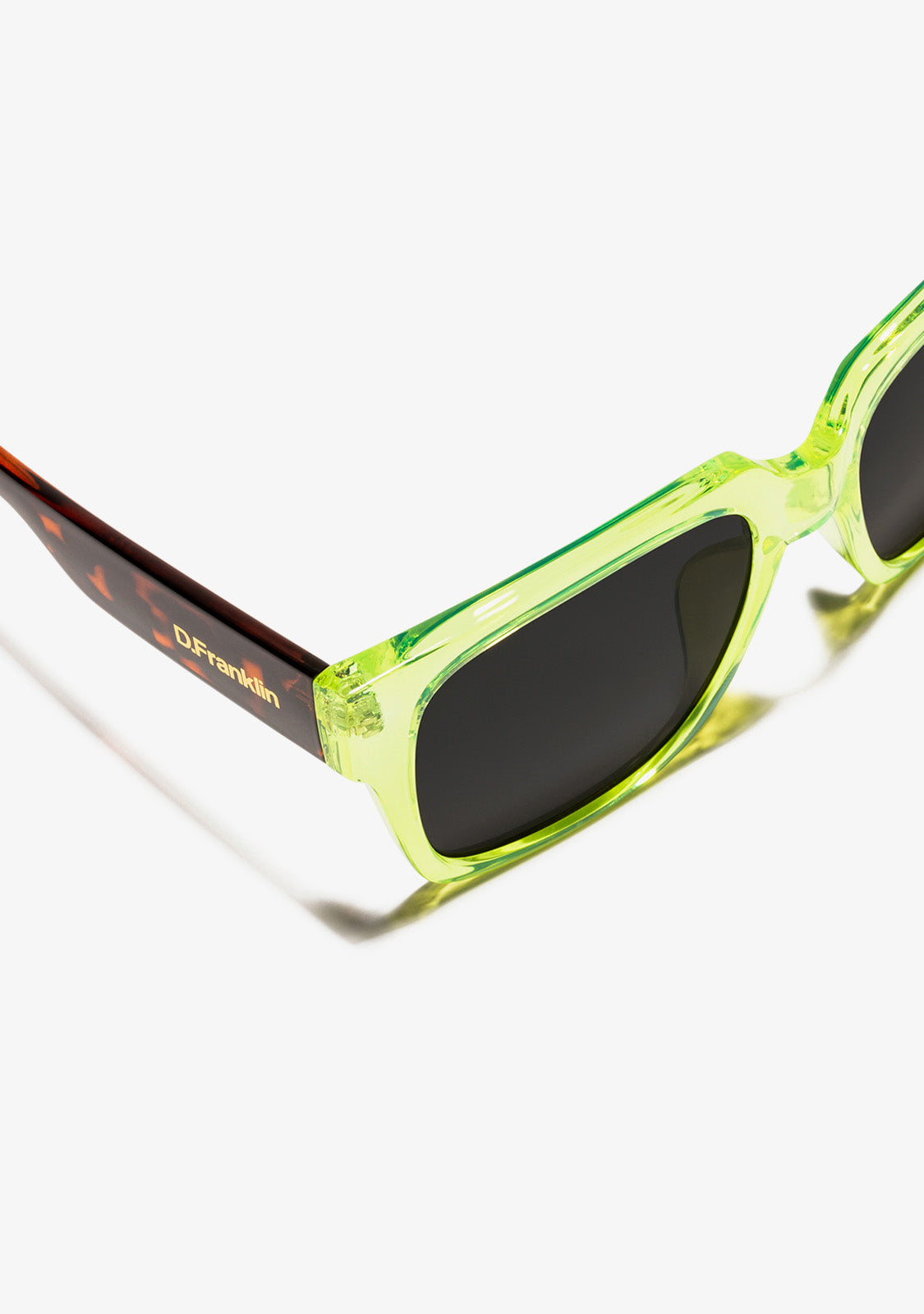 Gafas de sol con montura extragrande y un diseño de tendencia esta temporada. Así es el modelo Dunar Day Glo / Black de D.Franklin. Un diseño atrevido y transgresor que combina con las diferentes texturas y efectos de su característica montura cuadrada.