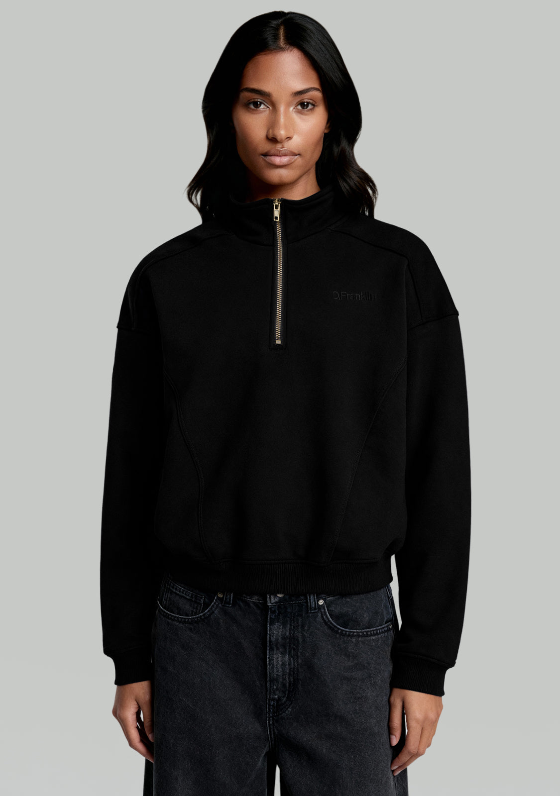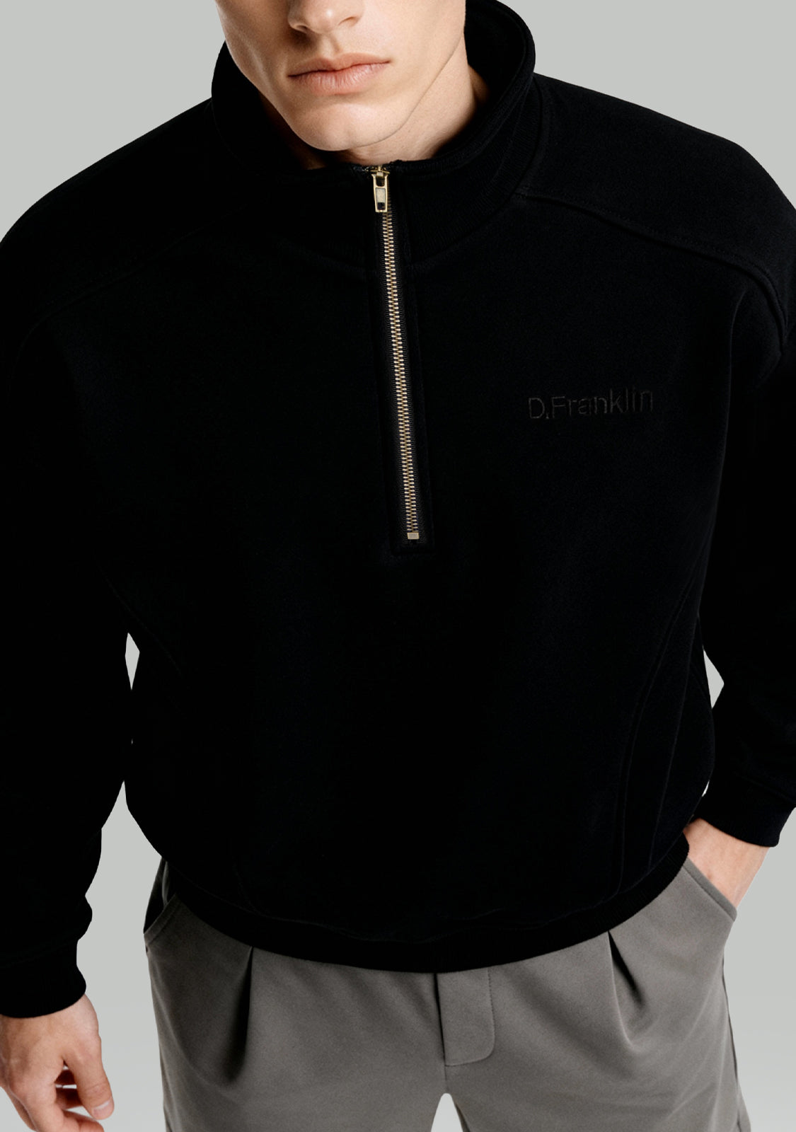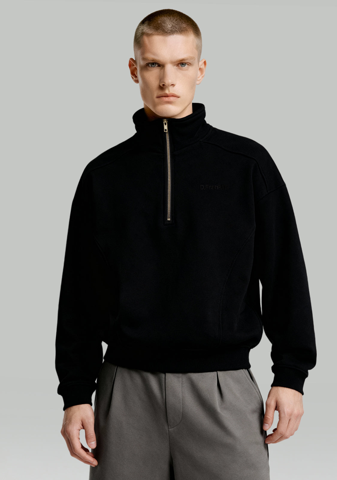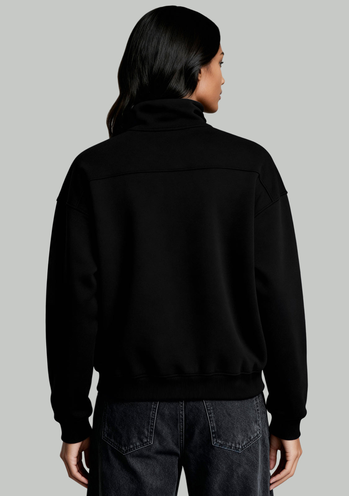 La Half-Zip Sweatshirt Black es una sudadera unisex que combina comodidad con una estructura moderna. El cuello con media cremallera aporta flexibilidad a tu ajuste, mientras que las costuras definidas rompen con la sencillez para un look más dinámico.