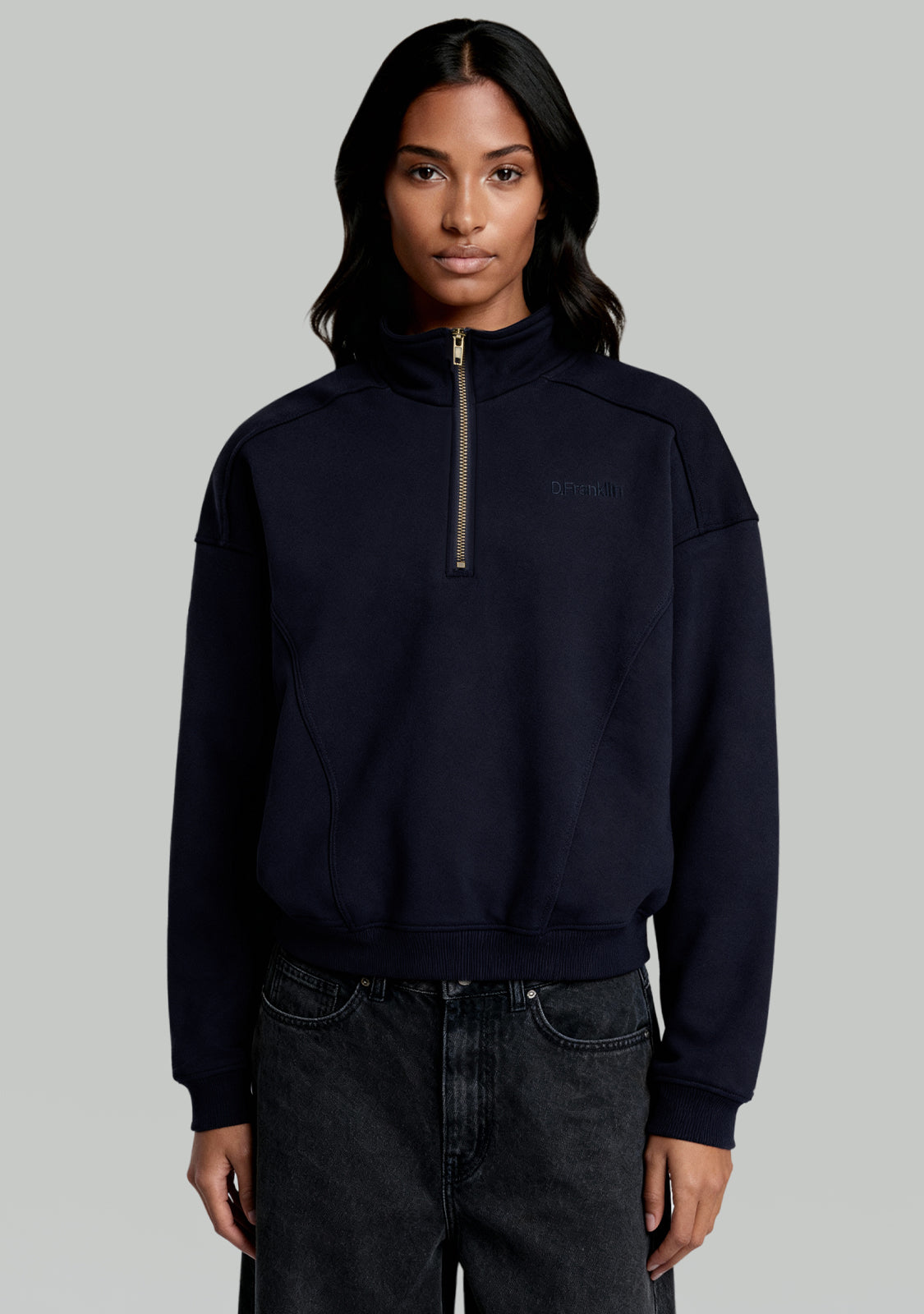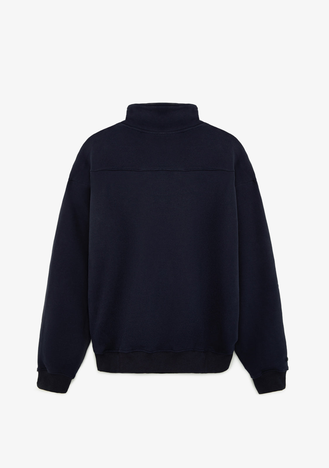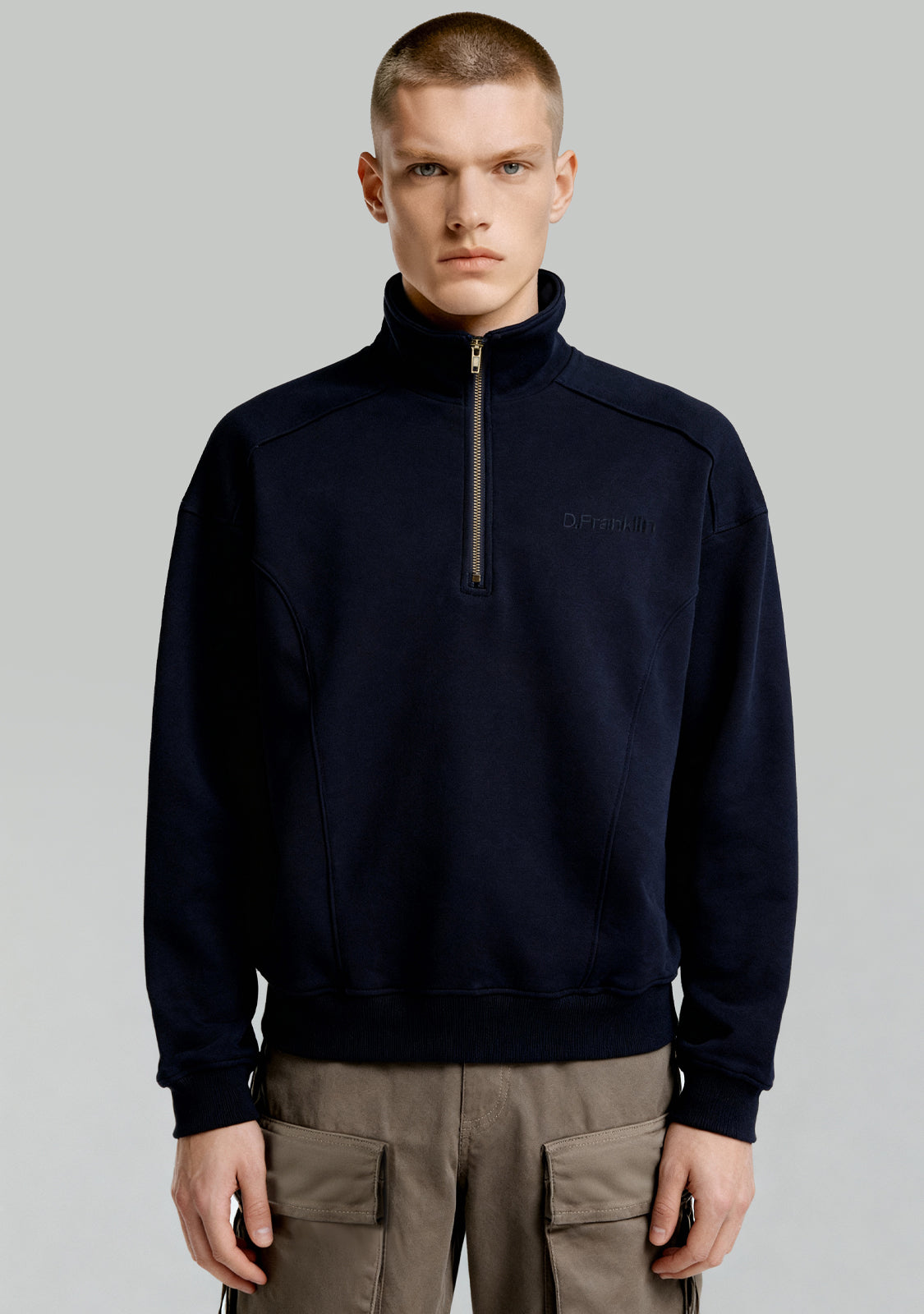 La Half-Zip Sweatshirt Navy es una sudadera unisex que combina comodidad con un diseño moderno. El cuello con media cremallera aporta flexibilidad, mientras que las costuras definidas rompen con la sencillez para un look más dinámico.
