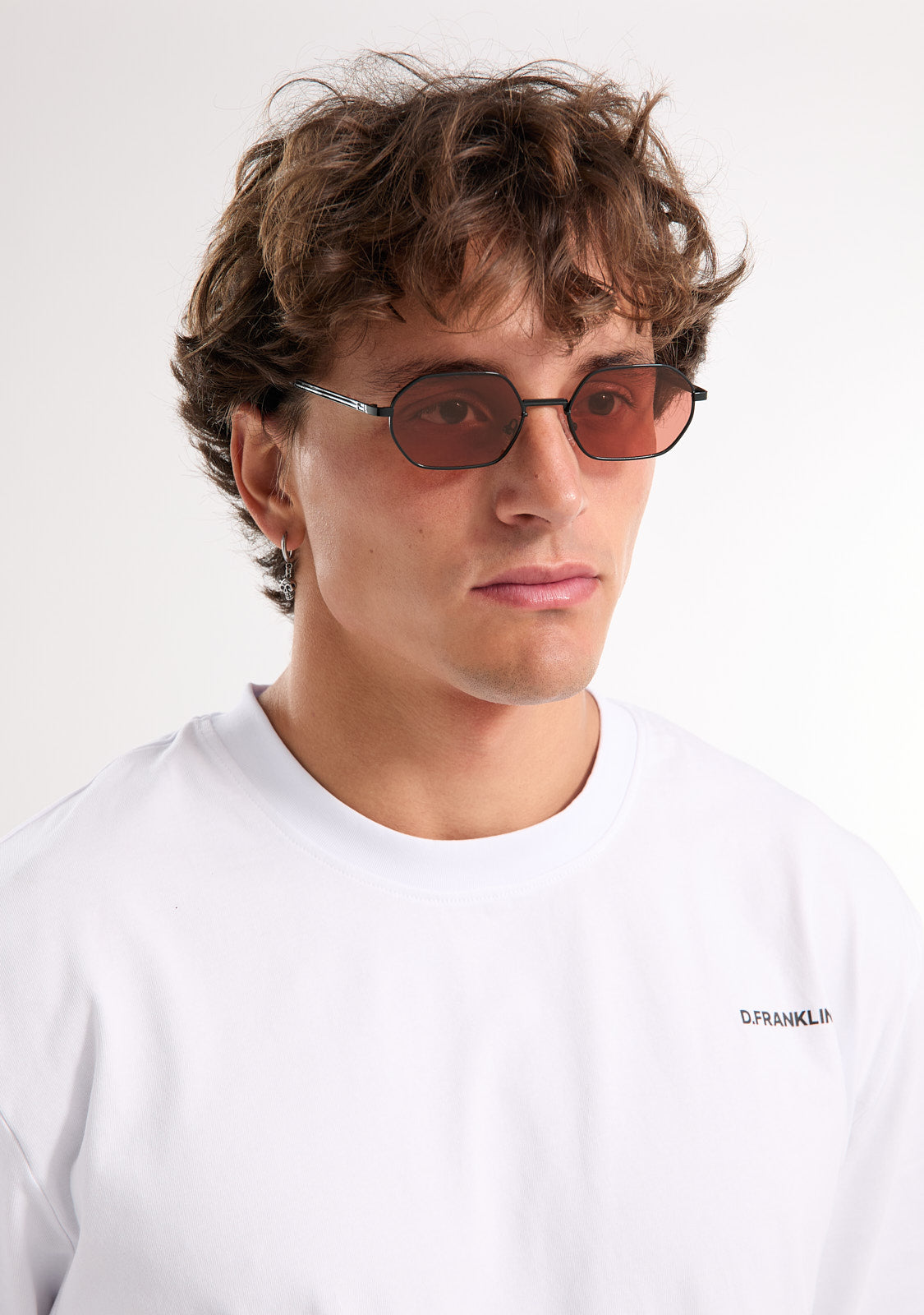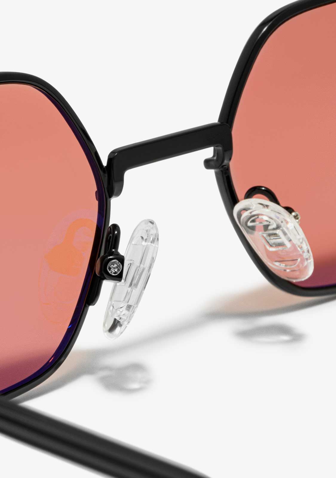 El diseño Square LX presenta un acabado metálico con estética hexagonal. Su montura en tono negro ha sido diseñada con unas lentes antirreflectantes de acabado rojo que permiten traspasar la mirada y definir las facciones. Su frontal es de 141 mm y su ancho de lente de 54 mm. Las patillas tienen una longitud de 140 mm y cuentan con nuestros detalles distintivos. Una pieza retro a la vez que minimalista con la que enmarcar cualquier estilismo.