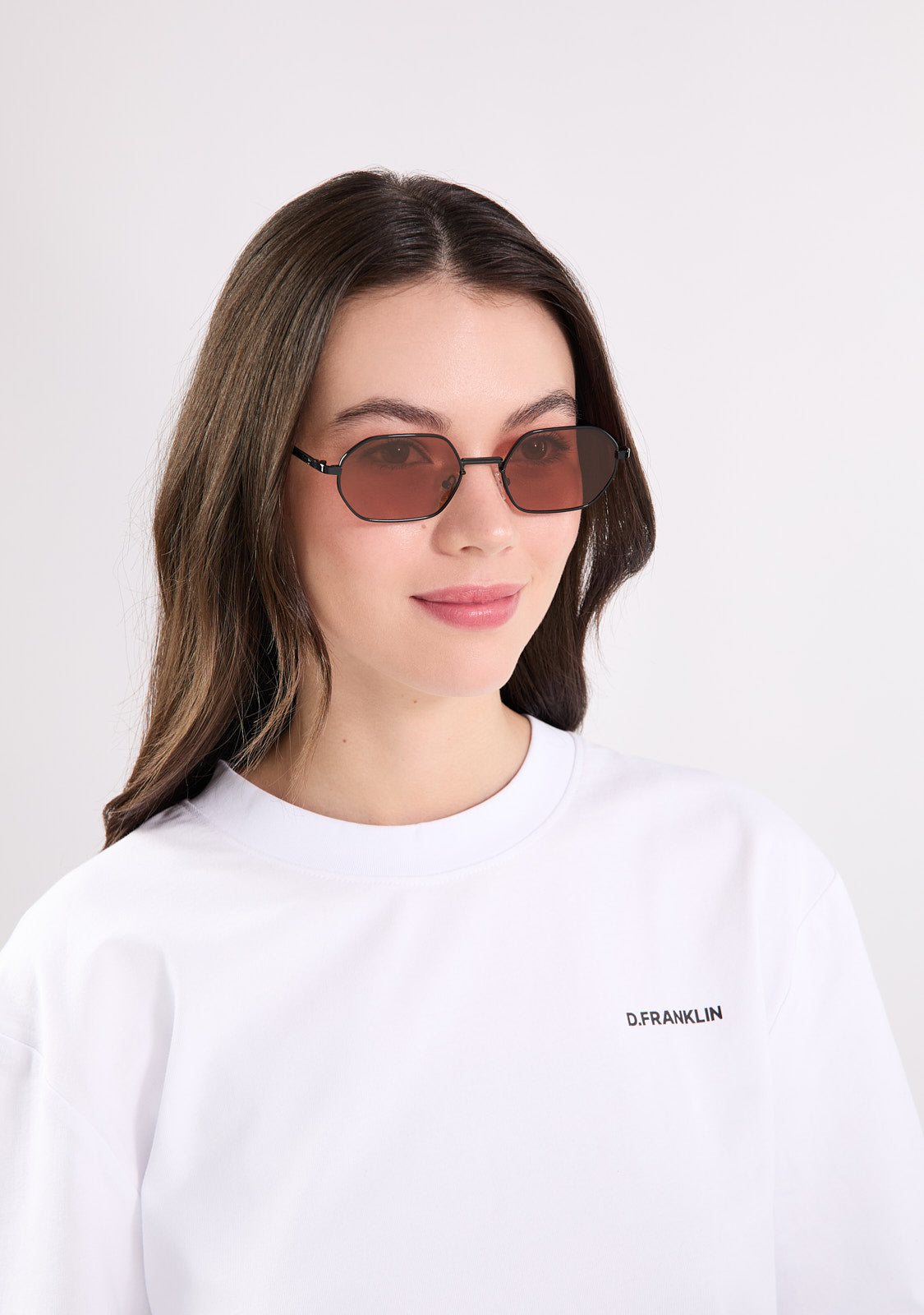Lentes de sol translúcidas con diseño geométrico. El legado de las piezas más icónicas de los 70 se fusiona con una selección de detalles actuales.
