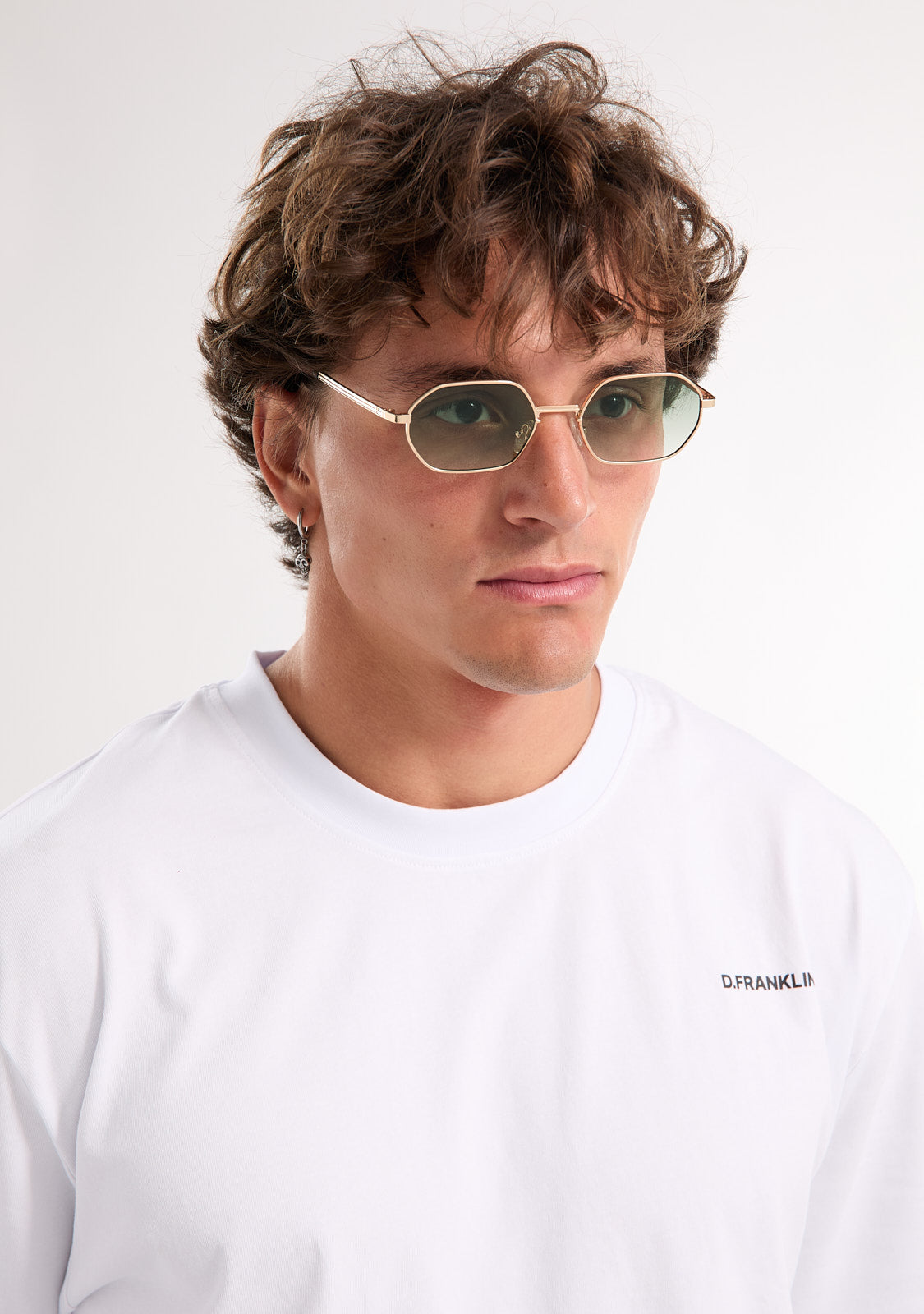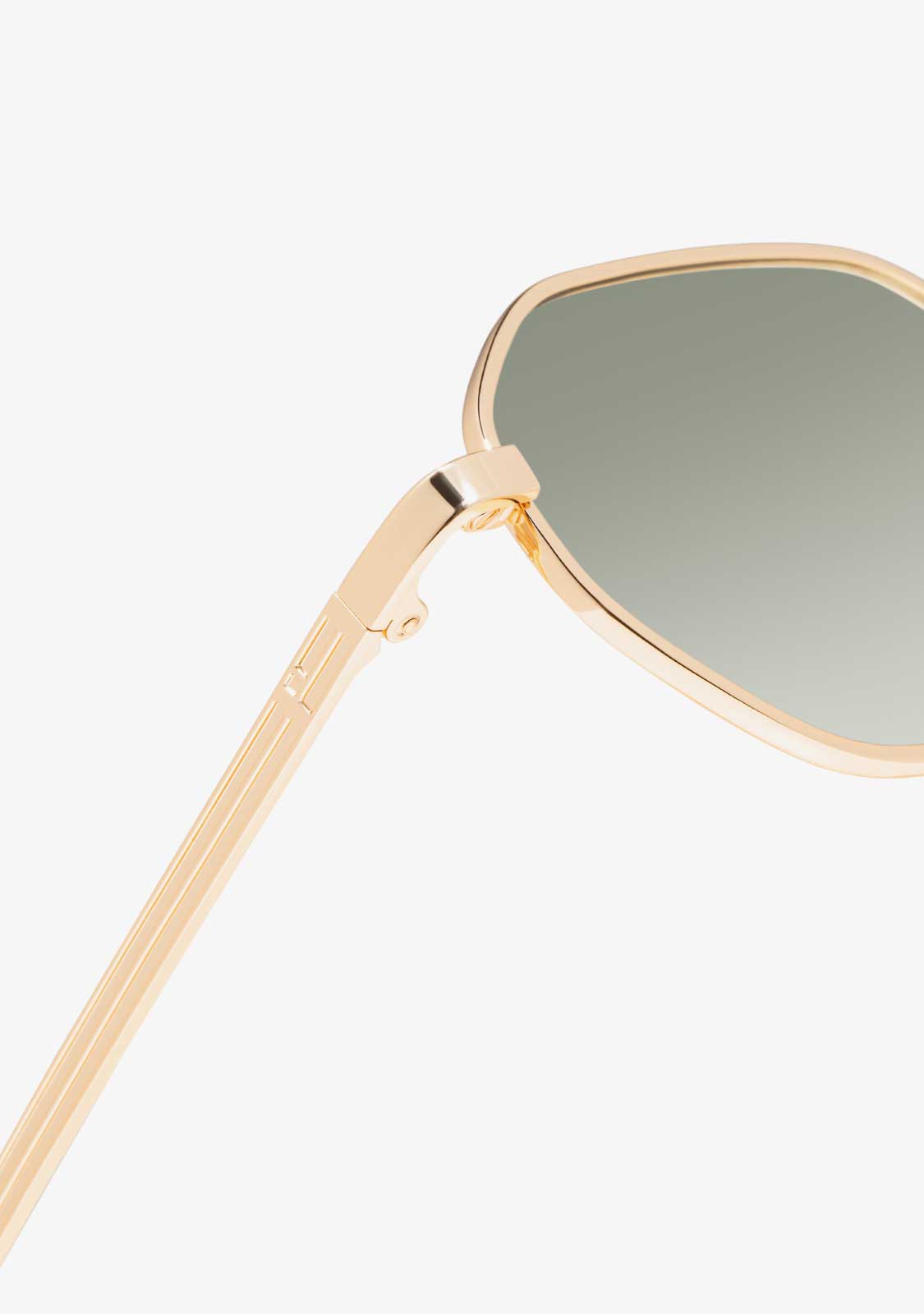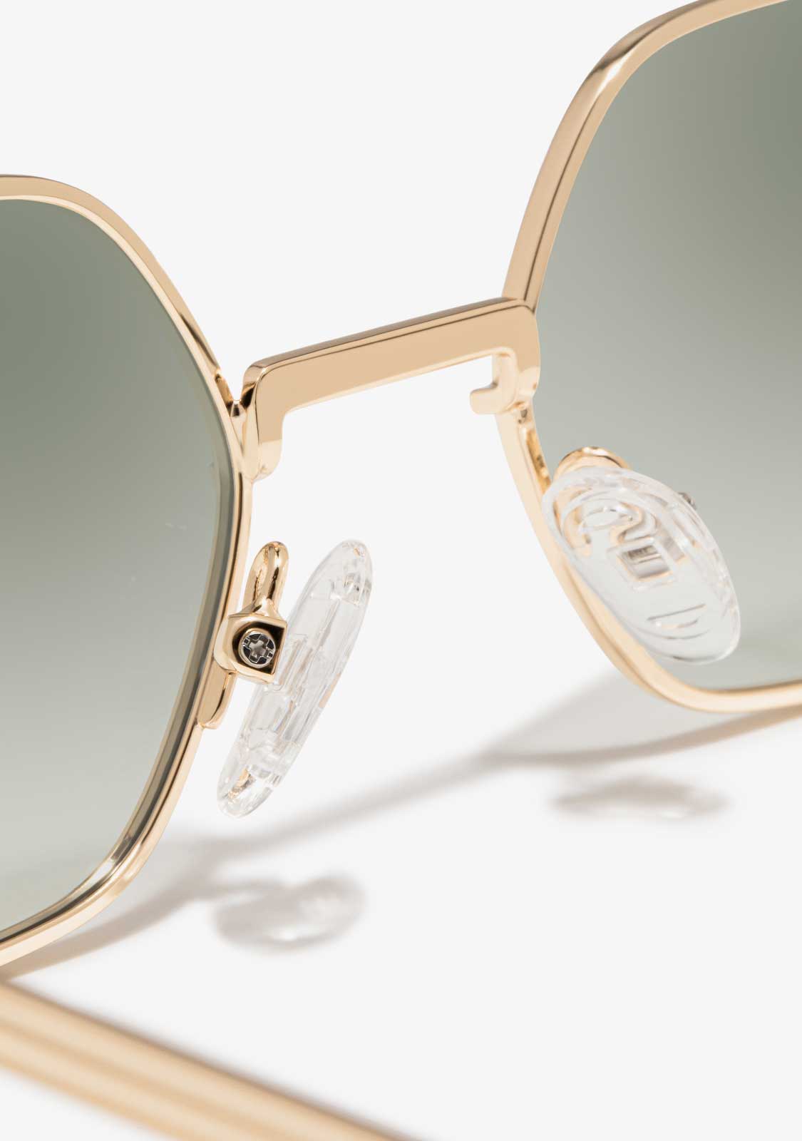 El diseño Square LX presenta un acabado metálico con estética hexagonal. Su montura en tono dorado ha sido diseñada con unas lentes antirreflectantes de acabado degradado verde que permiten traspasar la mirada y definir las facciones. Su frontal es de 141 mm y su ancho de lente de 54 mm. Las patillas tienen una longitud de 140 mm y cuentan con nuestros detalles distintivos. Una pieza retro a la vez que minimalista con la que enmarcar cualquier estilismo.
