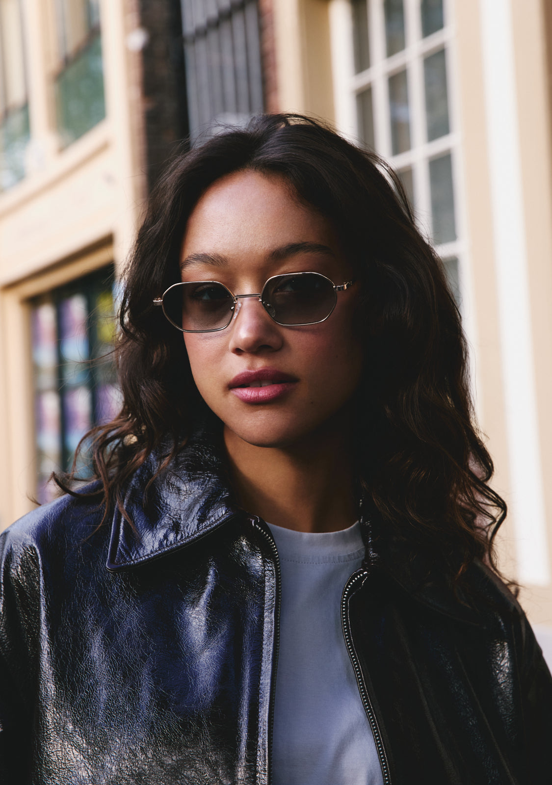 Lentes de sol translúcidas con diseño geométrico. El legado de las piezas más icónicas de los 70 se fusiona con una selección de detalles actuales.