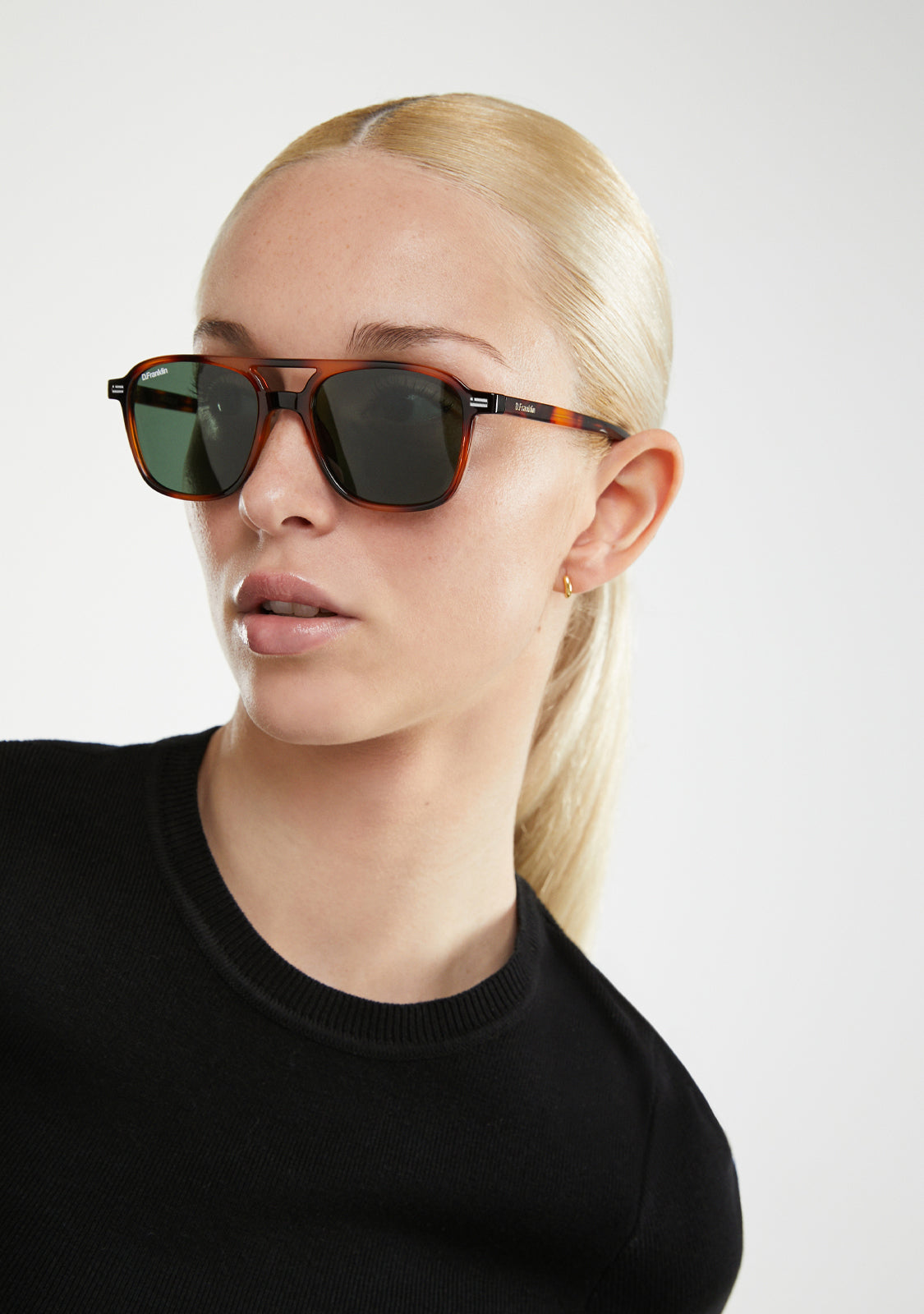 Gafas de sol con montura extra ligera y diseño estilizado que evoca a los modelos más icónicos de los años 80. Las nuevas Jackson Square Shiny Demi / G15 ofrecen un diseño que destaca por su doble puente, elegancia y la calidad de sus materiales.