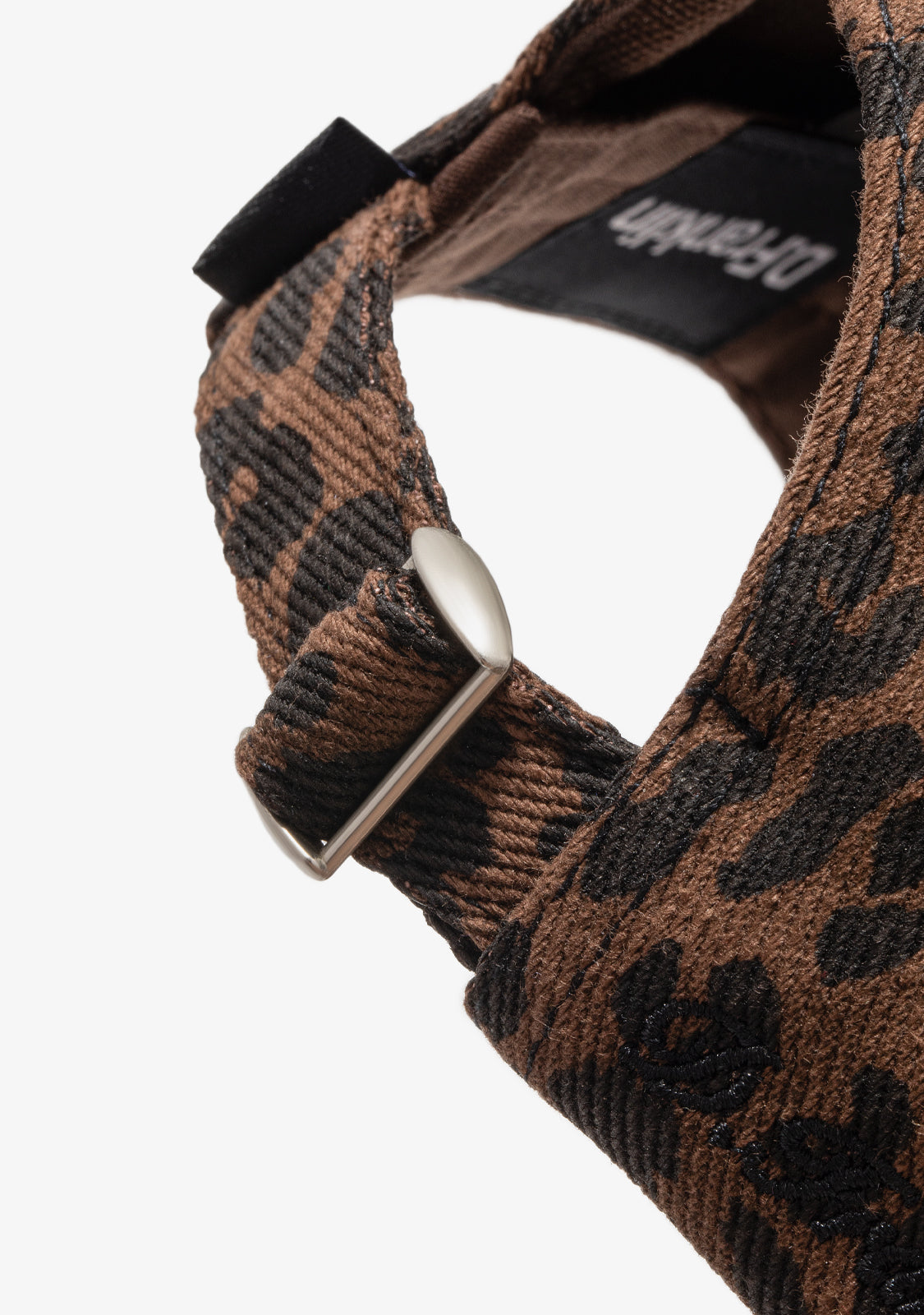 El parche de chenilla en la visera con un diseño de leopardo le da un toque moderno, mientras que la pieza metálica en la parte trasera permite un ajuste personalizado. Con una etiqueta tejida interior, esta gorra es una excelente opción para quienes buscan un accesorio elegante y funcional.