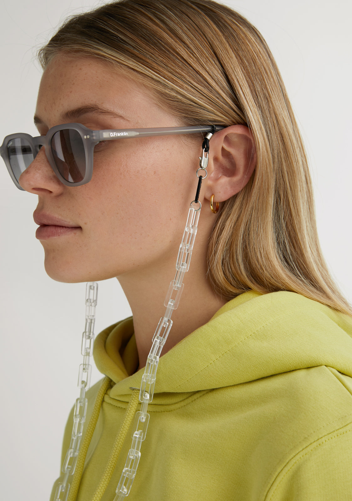 Ha llegado el momento. Ya están aquí las nuevas cadenas para lentes de D.Franklin. El complemento más buscado y que marca tendencia, rompiendo con todo lo anterior. Elige entre una amplia variedad de diseños únicos y cuélgate las gafas con orgullo. El modelo Link Chain Transparent tiene un estilo único que combinará con el modelo que prefieras.