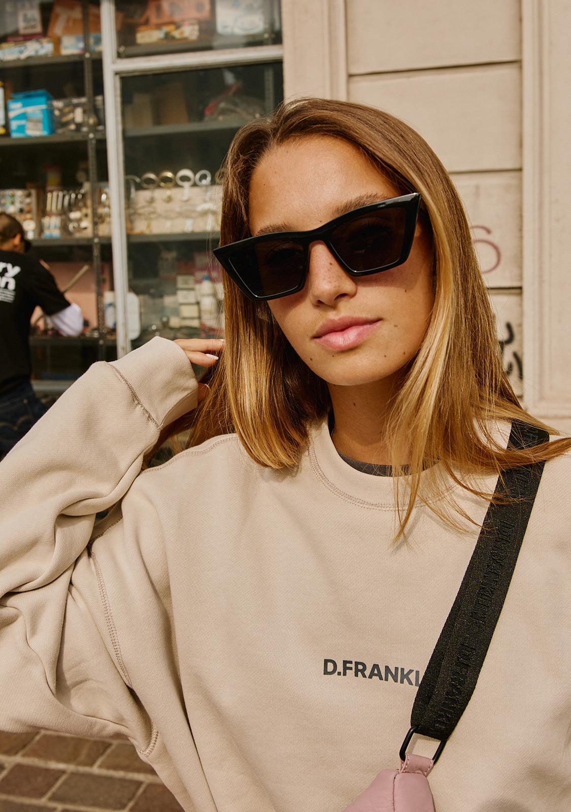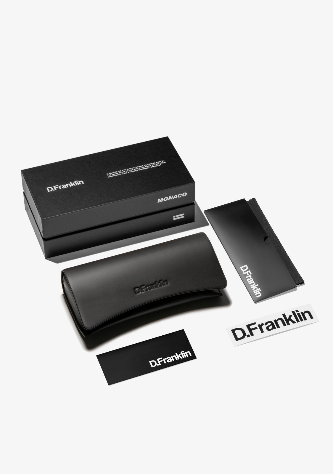 Nuestro modelo Mónaco en color negro cuenta con los detalles más distintivos de D.Franklin, el logo grabado en las patillas y emblema en la lente. Su ancho de lente es de 55 mm y su frontal de 152 mm. Las varillas laterales tienen una longitud de 150 mm, perfectas para todos los rostros.