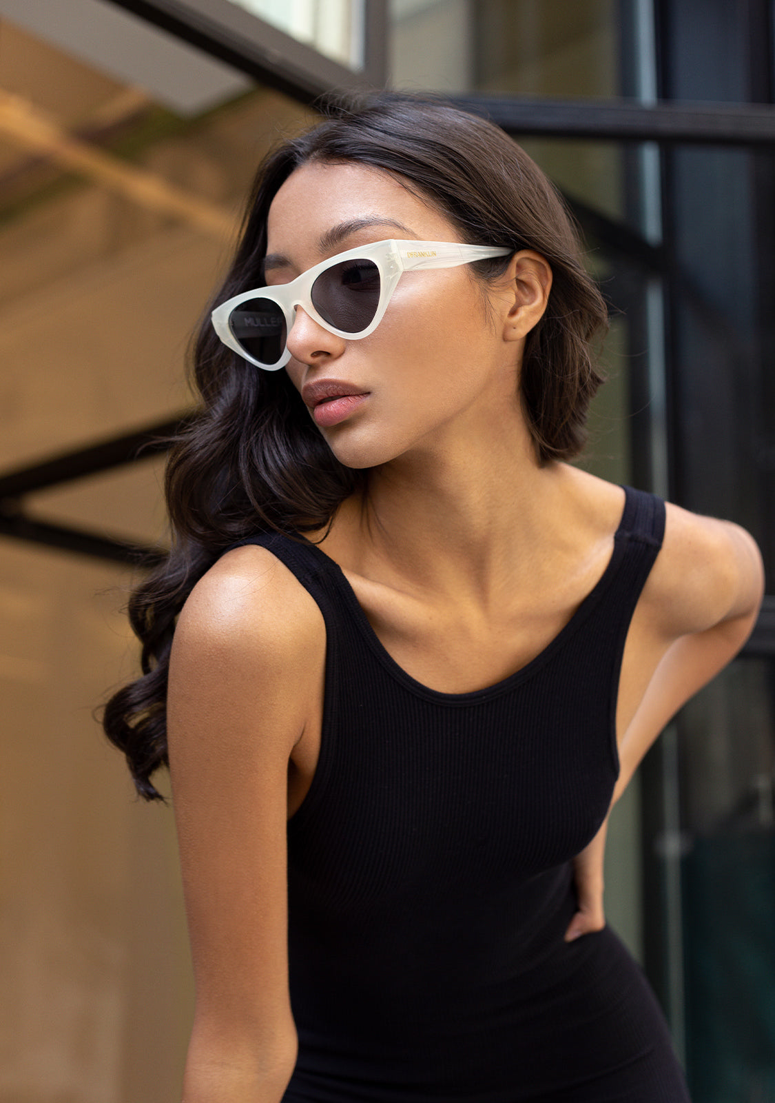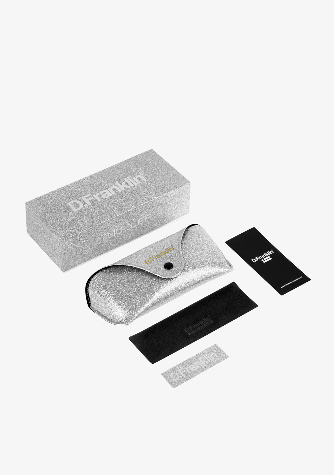 La colección Muller se caracteriza por su montura de acetato y el método de fabricación, hecha a mano, cuidando en cada uno de sus procesos hasta el más mínimo detalle. Las Muller Milky / Black destacan por la pureza del blanco en su marco frontal con detalles en dorado y varillas laterales en combinación con lentes en color negro.