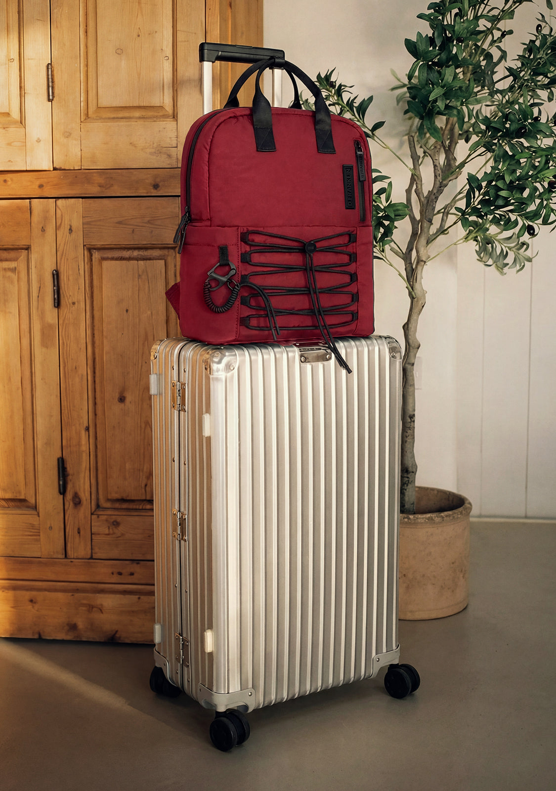 Esta mochila multicompartimentos de D.Franklin en acabado rojo está confeccionado con materiales técnicos que le aportan ligereza y resistencia. Su interior cuenta con un bolsillo acolchado para portátiles de hasta 14 pulgadas, así como dos pequeños apartados organizadores. También presenta una cinta interior desde la que se puede colgar su llavero de mosquetón ubicado en la parte frontal.