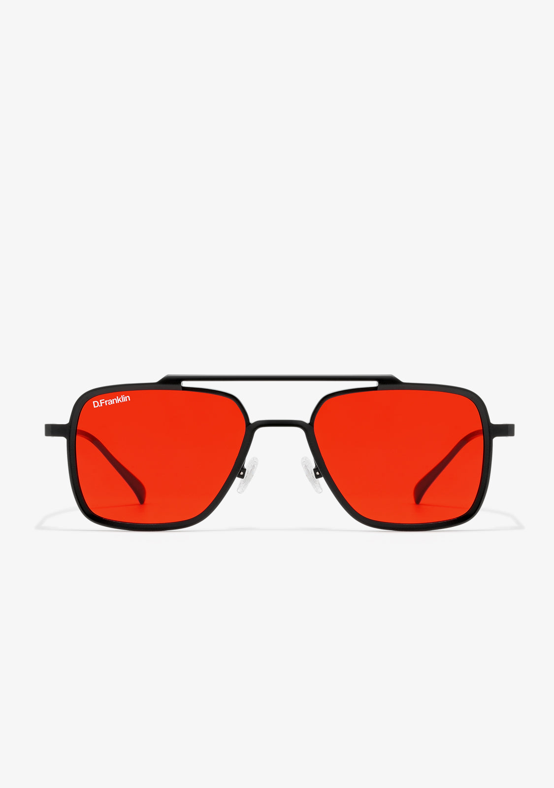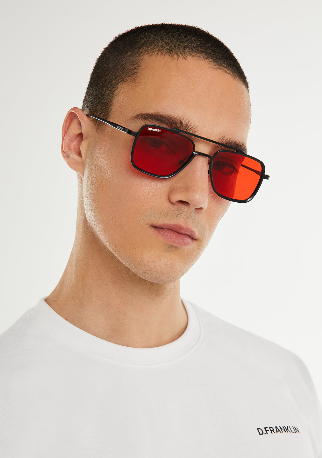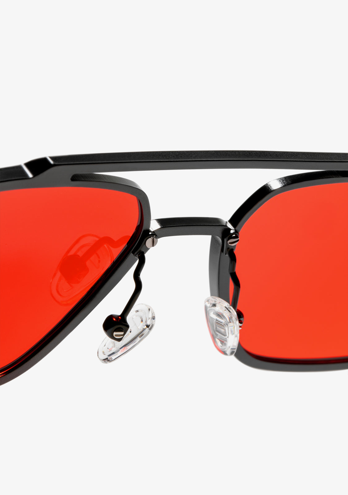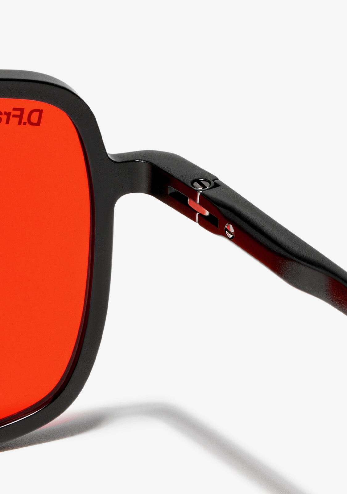 Gracias a su fabricación en aluminio, estas gafas son ultra ligeras. Sus lentes polarizadas en tono rojo y su marco negro afianzan un diseño característico. Estas gafas de sol cuentan con nuestro emblema en la lente derecha y con logo metalizado en el lateral de las patillas. Presenta también una montura frontal de 140 mm y un ancho de lente de 50 mm, que se adapta a la mayoría de rostros. Las varillas tienen una longitud de 138 mm.