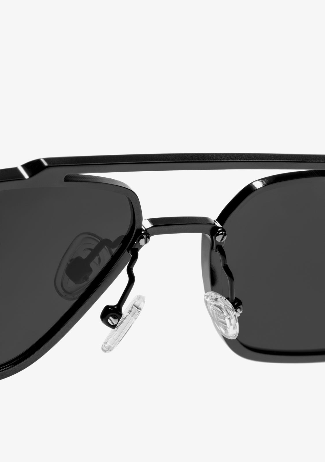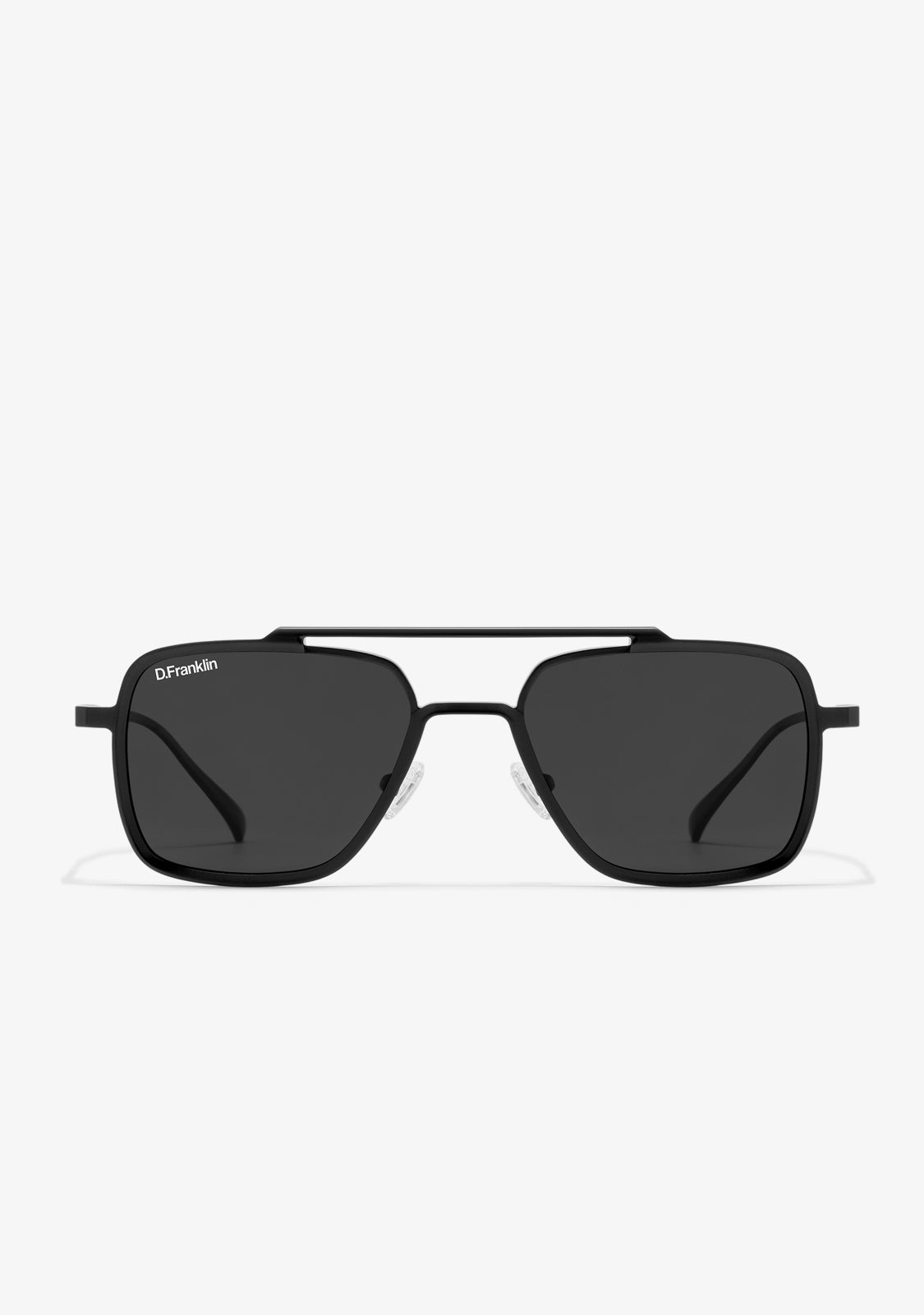 Gracias a su fabricación en aluminio, estas gafas son ultra ligeras. Sus lentes polarizadas en tono negro y su marco oscuro afianzan un diseño característico. Estas gafas de sol cuentan con nuestro emblema en la lente derecha y con logo metalizado en el lateral de las patillas. Presenta también una montura frontal de 140 mm y un ancho de lente de 50 mm, que se adapta a la mayoría de rostros. Las varillas tienen una longitud de 138 mm.