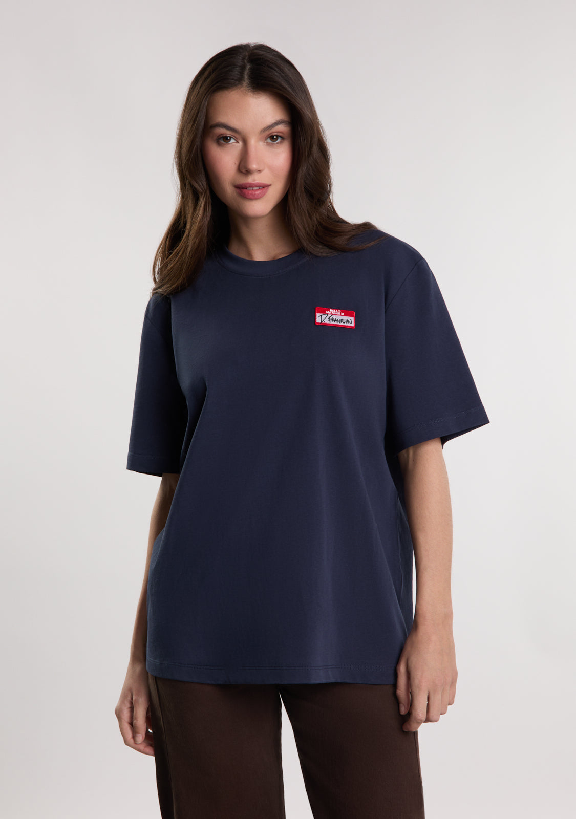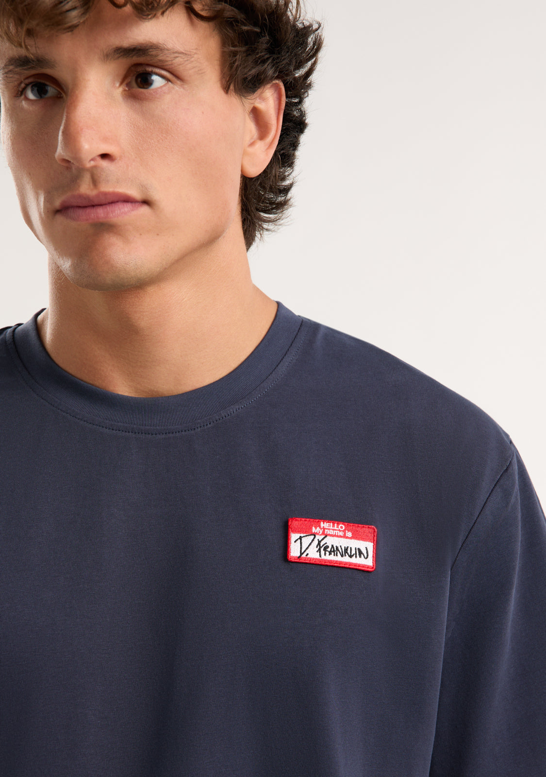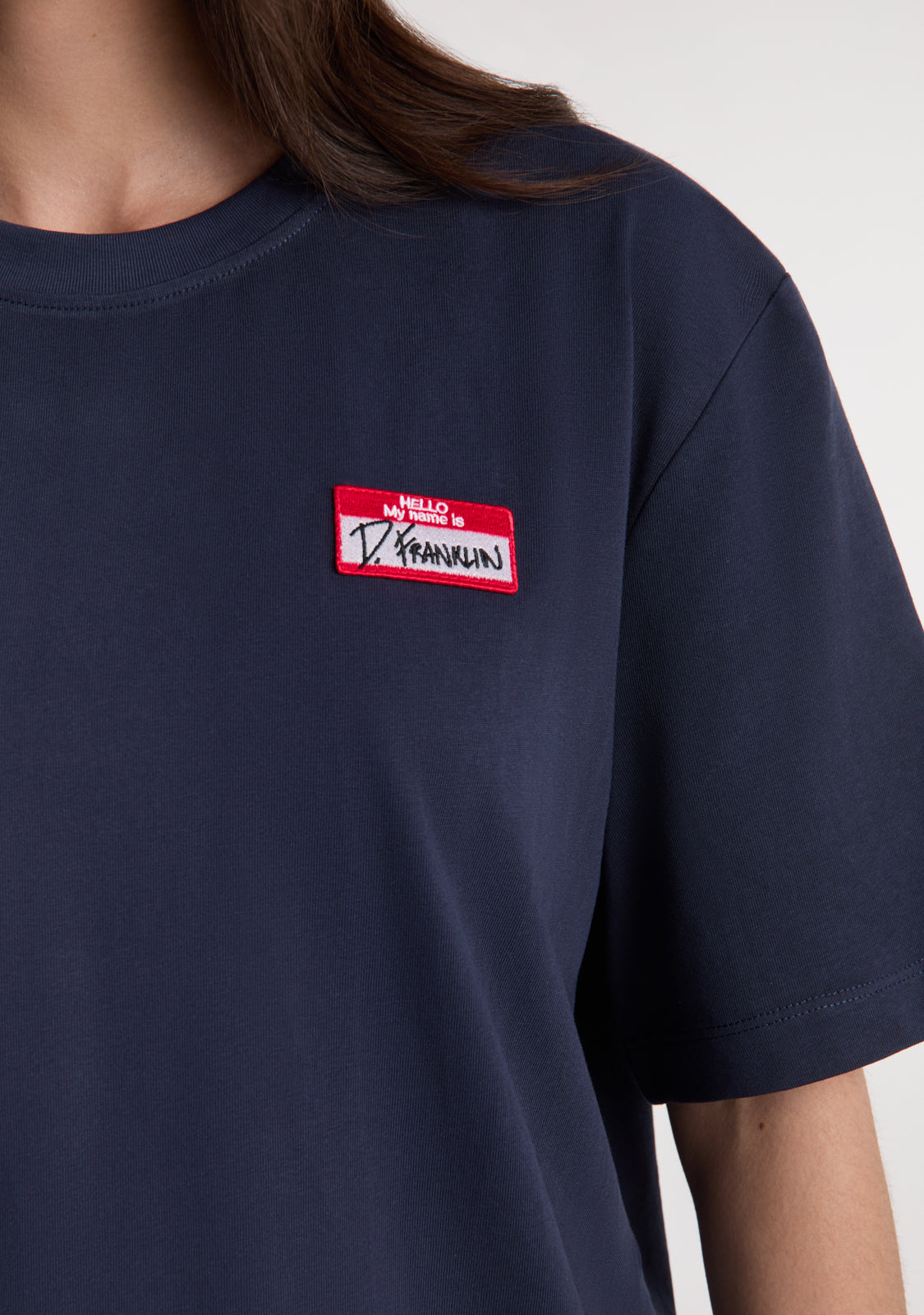 La My Name Is Patch T-Shirt Navy de D.Franklin es la camiseta perfecta para un look cómodo y con estilo. Fabricada en 100% algodón de alta calidad (230 GMS), esta prenda es suave, resistente y ideal para tu día a día. Su corte holgado y el cuello redondo garantizan un ajuste cómodo, permitiendo libertad de movimiento en todo momento.