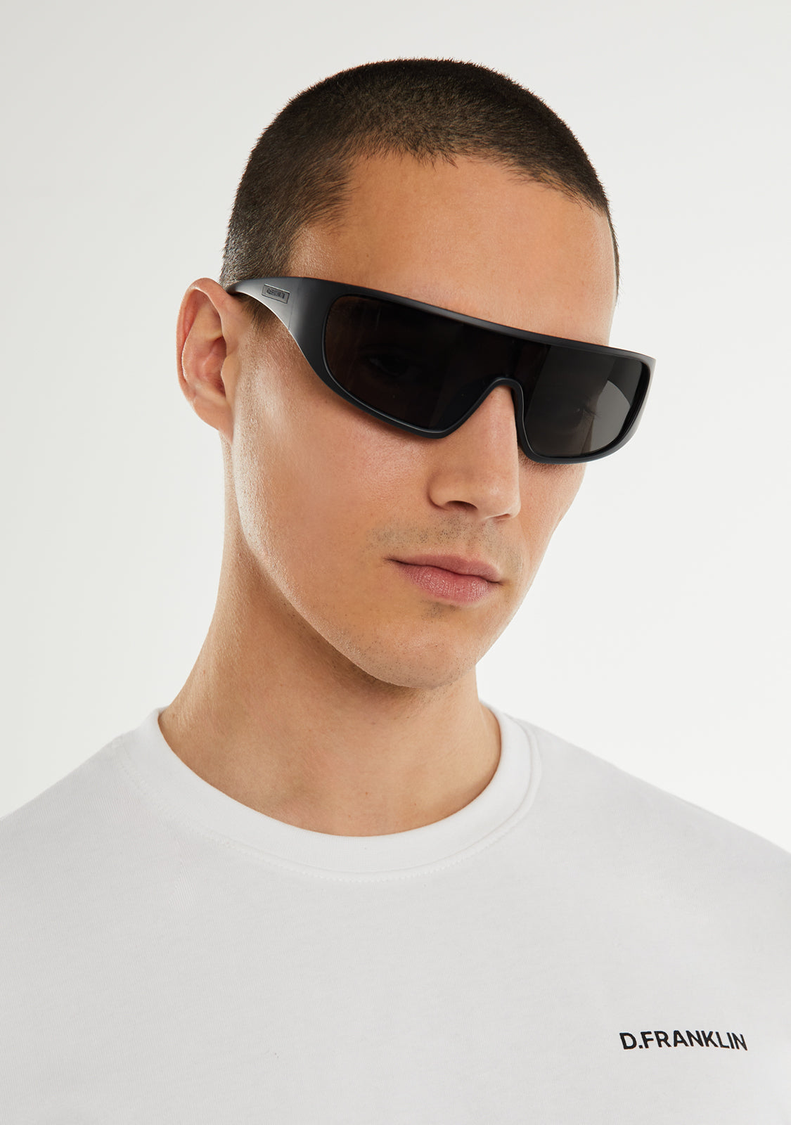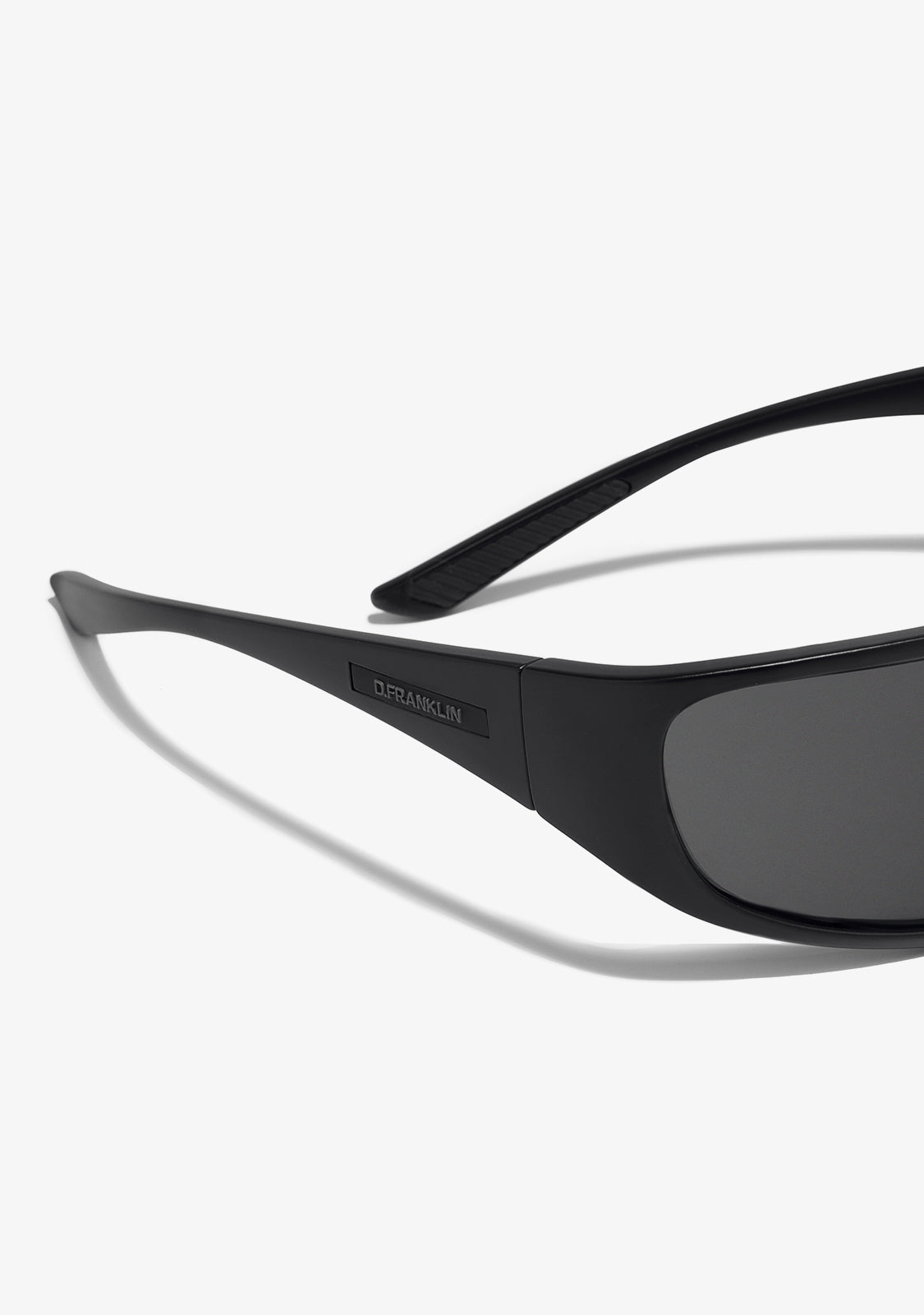 Este modelo presenta una montura con acabado mate negro y una estética curvada. Cuenta con lentes en tono ahumado y nuestro distintivo emblema en el lateral de las patillas. El ancho uniforme de lente de 131mm y el marco frontal de 145mm quedan unidos mediante una varilla de 130mm.