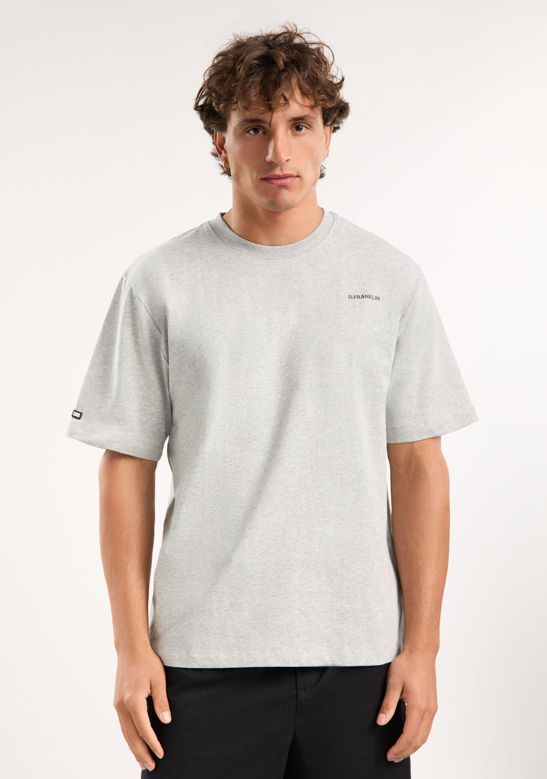 La Origins T-Shirt Grey Melange / Anthracite de D.Franklin es una prenda versátil y cómoda que no puede faltar en tu armario. Fabricada al 100% en algodón de 230 GMS, garantiza suavidad y frescura durante todo el día. Su corte suelto y cuello redondo ofrecen un ajuste relajado, ideal para cualquier ocasión.