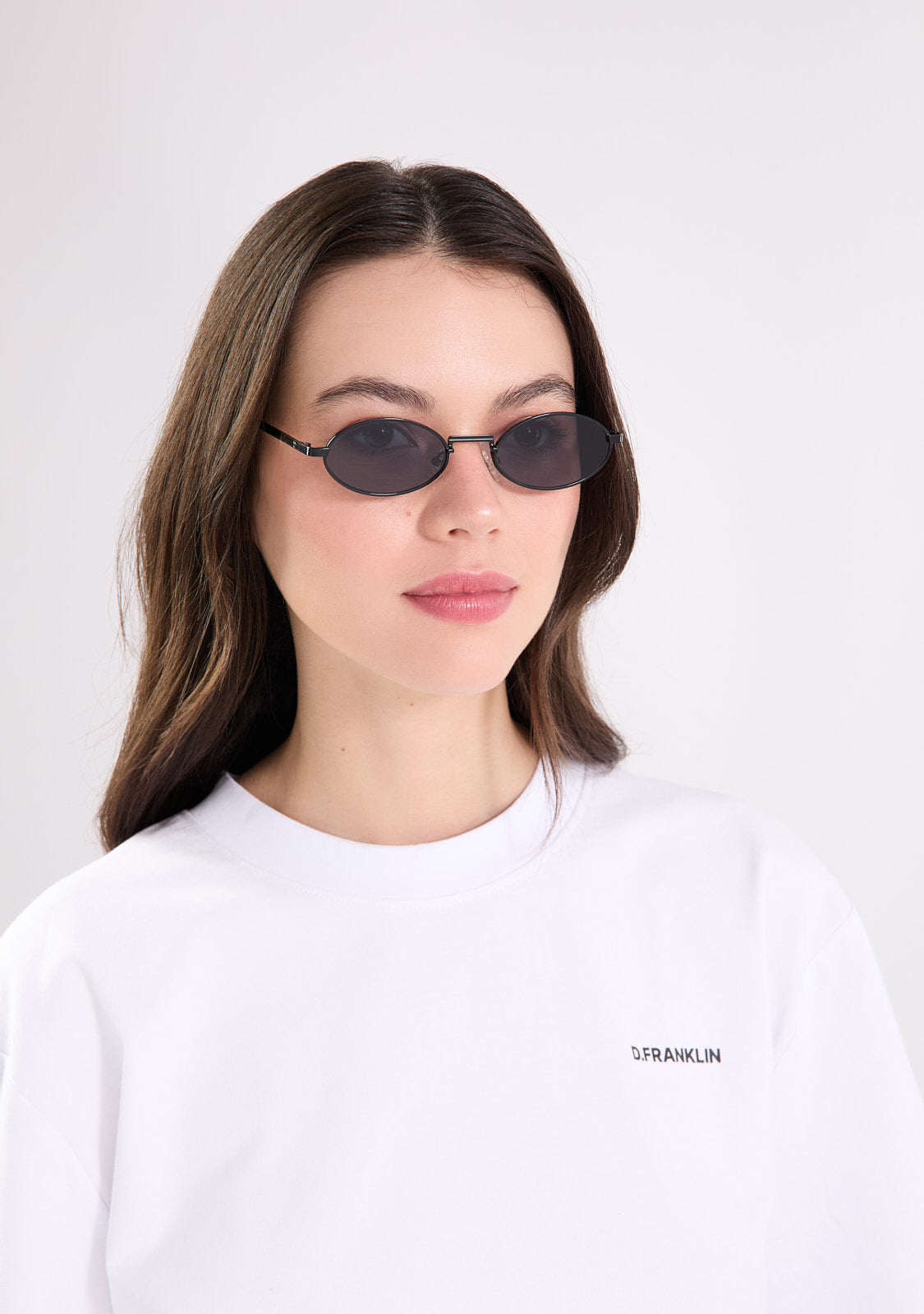 El diseño Oval LX presenta un acabado metálico con estética circular. Su montura en tono negro ha sido diseñada con unas lentes antirreflectantes de ahumadas que permiten traspasar la mirada y definir las facciones. Su frontal es de 135 mm y su ancho de lente de 51 mm. Las patillas tienen una longitud de 140 mm y cuentan con nuestros detalles distintivos. Una pieza retro a la vez que minimalista con la que enmarcar cualquier estilismo.