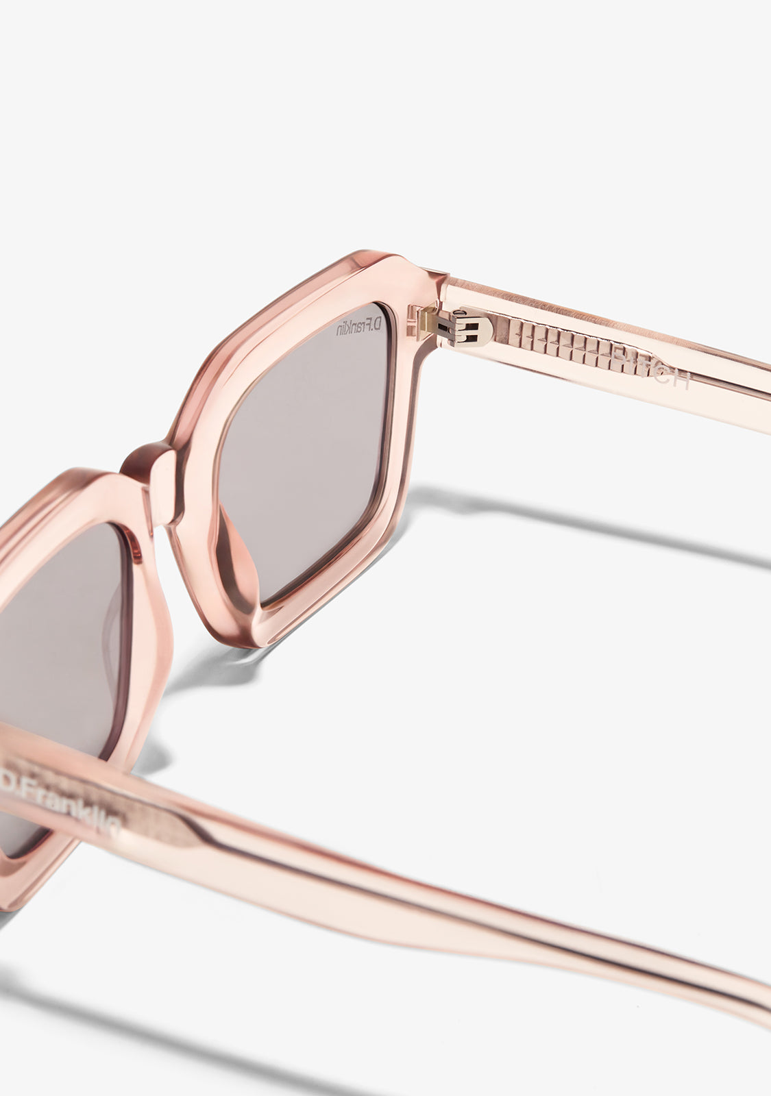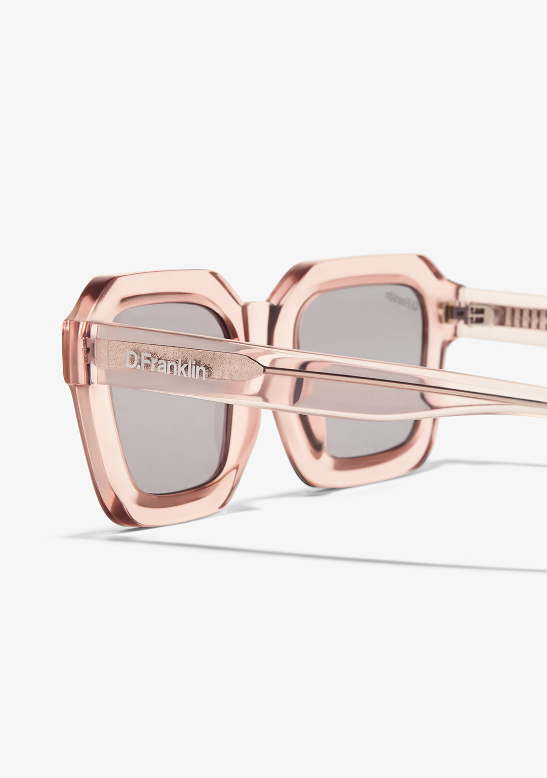 Las Pitch Pink / Smoke Black de D.Franklin ofrecen un diseño elegante y minimalista que combina comodidad y funcionalidad en cada detalle. Con una estructura completamente fabricada en acetato, estas gafas destacan por su resistencia, ligereza y ajuste cómodo.