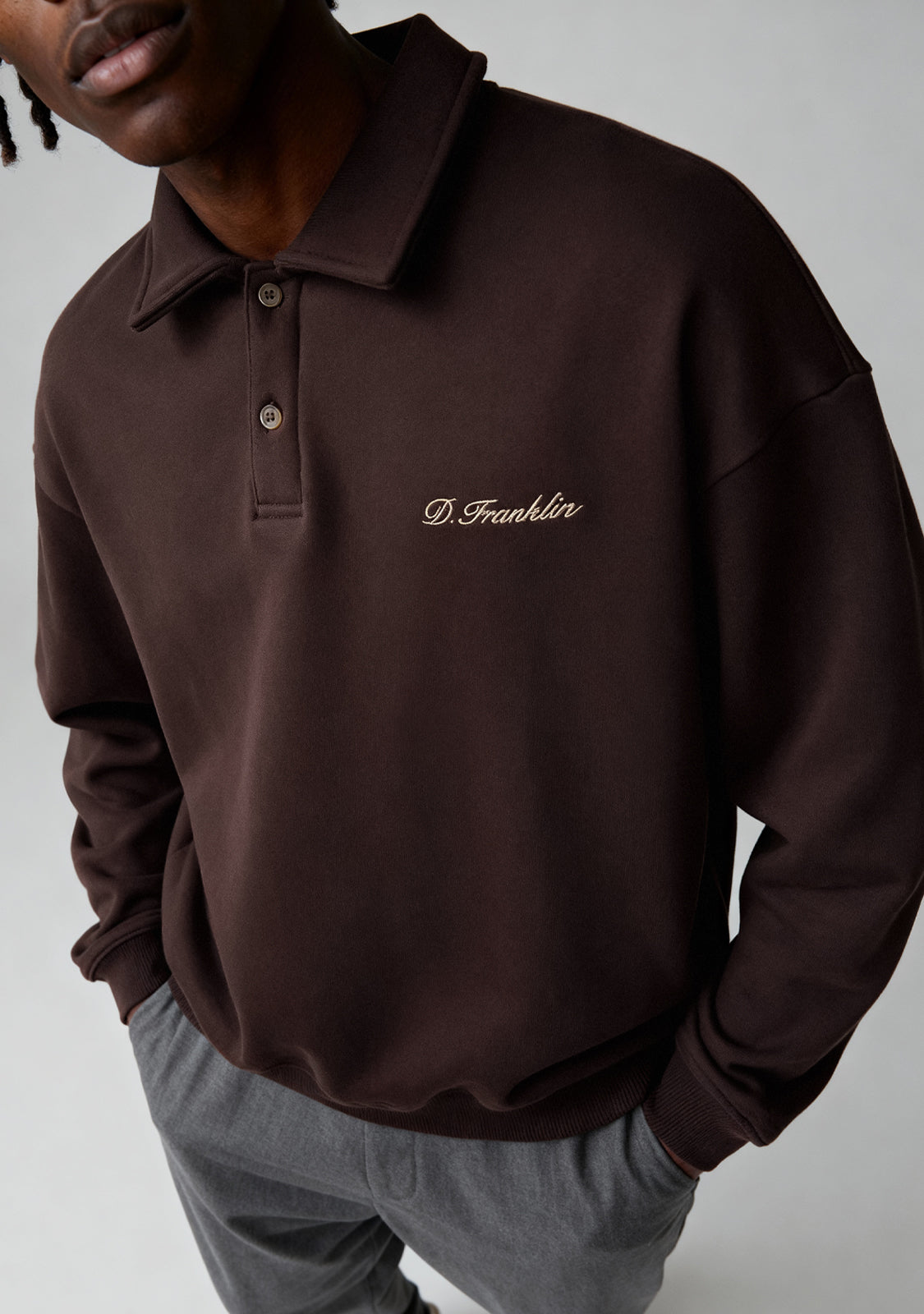 Polo Sweatshirt Brown es una sudadera unisex con un diseño de polo impecable. Es una prenda esencial y fácil de llevar que aporta calidez a tu look diario.