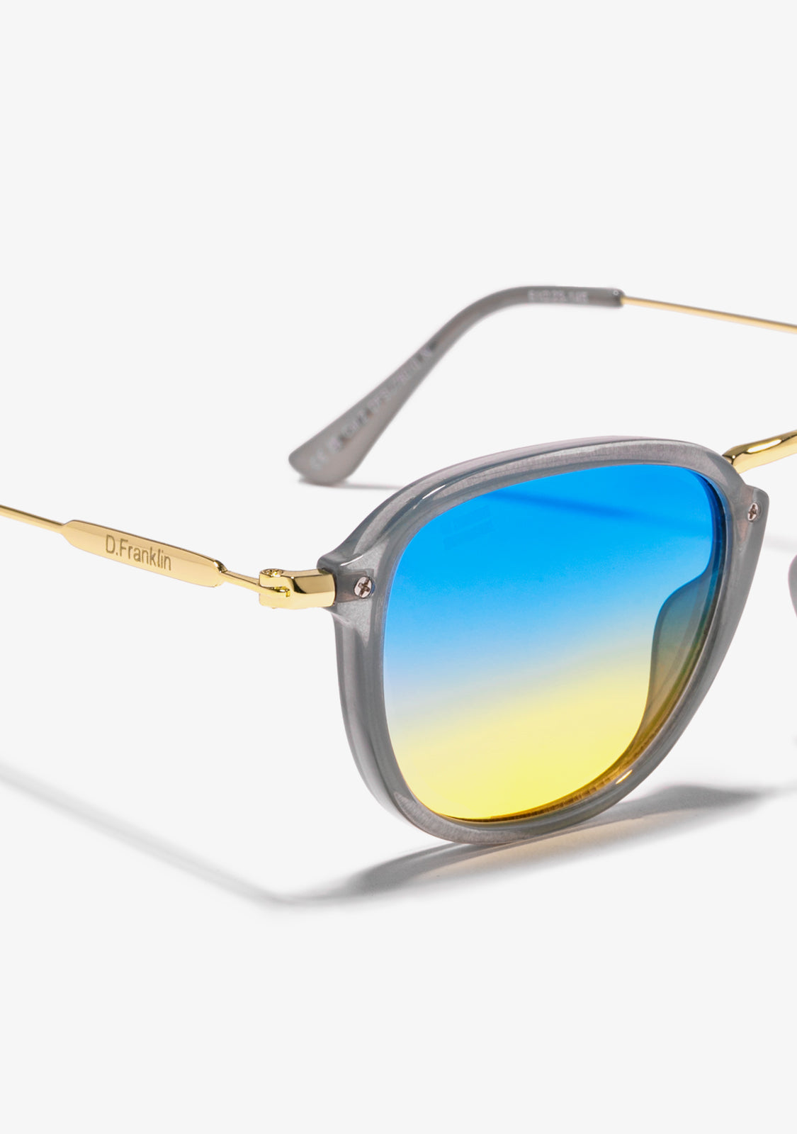 El espíritu de los sesenta. Viajamos en el tiempo y modernizamos uno de los modelos más emblemáticos de D.Franklin. Estas lentes de sol con inspiración retro fusionan una montura de estilo clásico con unos acabados tendencia impolutos. Diseño unisex con esencia vintage, creado para una estética inconfundible.