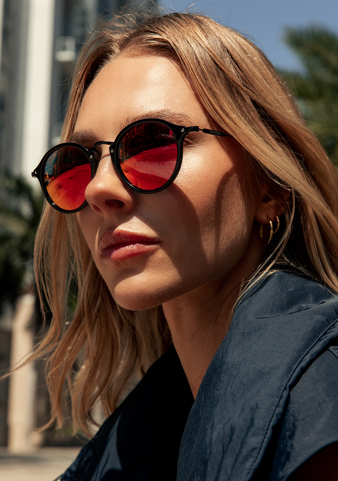 Lentes de sol unisex inspiradas en la estética retro y en los viajes de carretera que queremos hacer. Rediseñamos y modernizamos una de las monturas de corte clásico más icónica de todos los tiempos. Una retrospectiva de acabados impecables (y muchas ganas de ver mundo) que ya es un emblema de nuestra marca.Sus lentes redondeadas ahumadas en tonos rojizos con efecto espejo y su montura en negro refuerzan la estética setentera de este modelo. Cuenta con nuestros detalles distintivos D.Franklin: el logo grabado en ambas varillas metálicas y nuestro emblema en la lente derecha. Con un ancho de lente de 49 mm y una montura con ancho frontal de 148 mm, estas gafas favorecen a la mayoría de los rostros. Las varillas laterales tienen una longitud de 145 mm.
