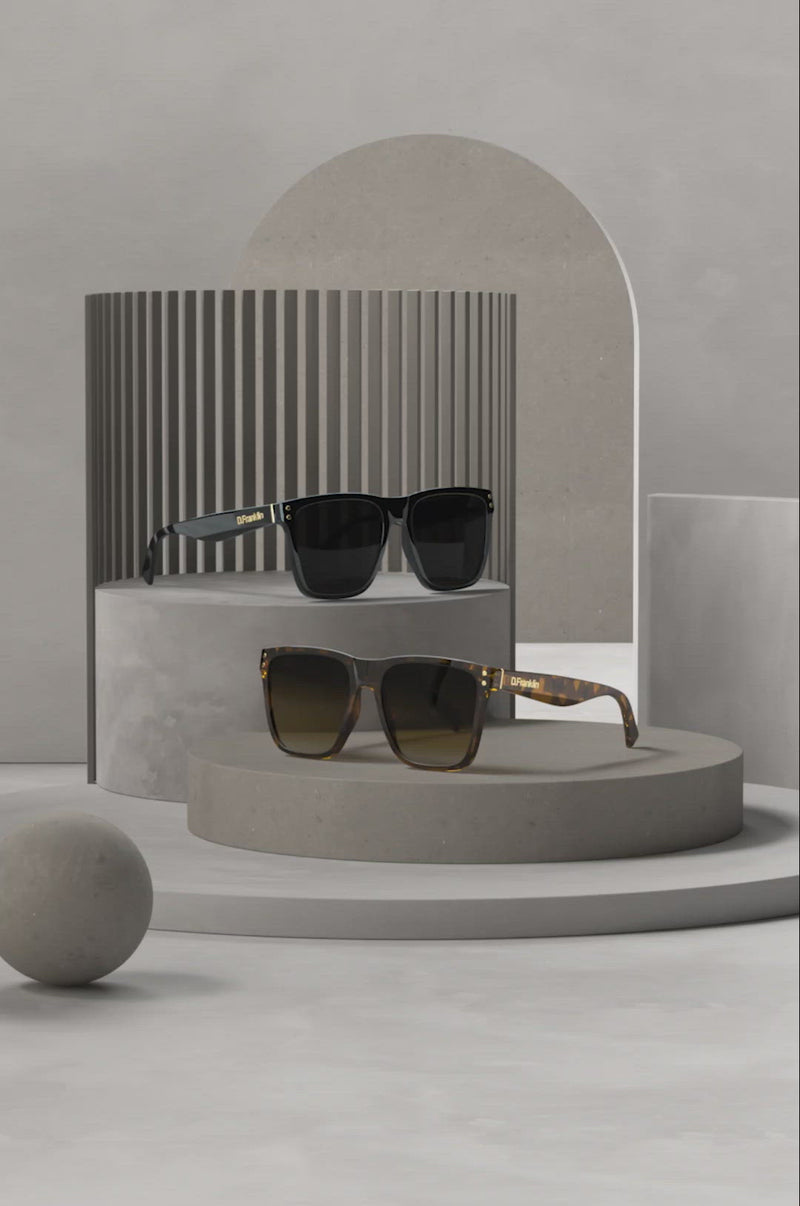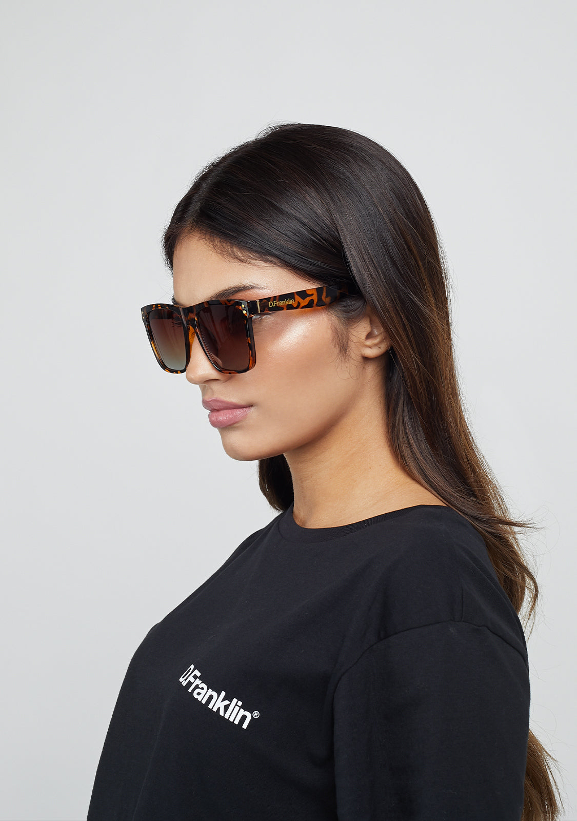Lentes de sol Roosevelt II Carey / Brown de D.Franklin, el modelo más clásico de la firma, ahora con un diseño renovado y de mayores dimensiones.