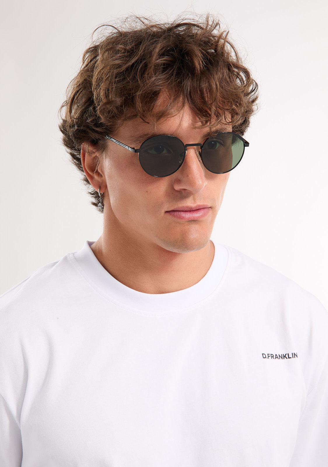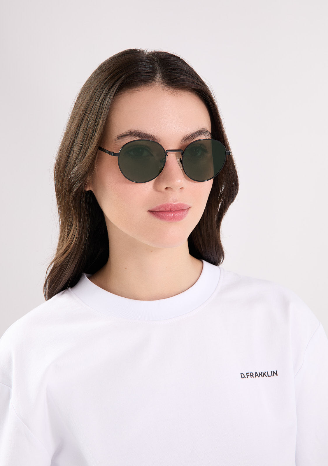 El diseño Round LX presenta un acabado metálico con estética ovalada. Su montura en tono negro ha sido diseñada con unas lentes antirreflectantes de acabado verde que permiten traspasar la mirada y definir las facciones. Su frontal es de 139 mm y su ancho de lente de 52 mm. Las patillas tienen una longitud de 140 mm y cuentan con nuestros detalles distintivos. Una pieza retro a la vez que minimalista con la que enmarcar cualquier estilismo.