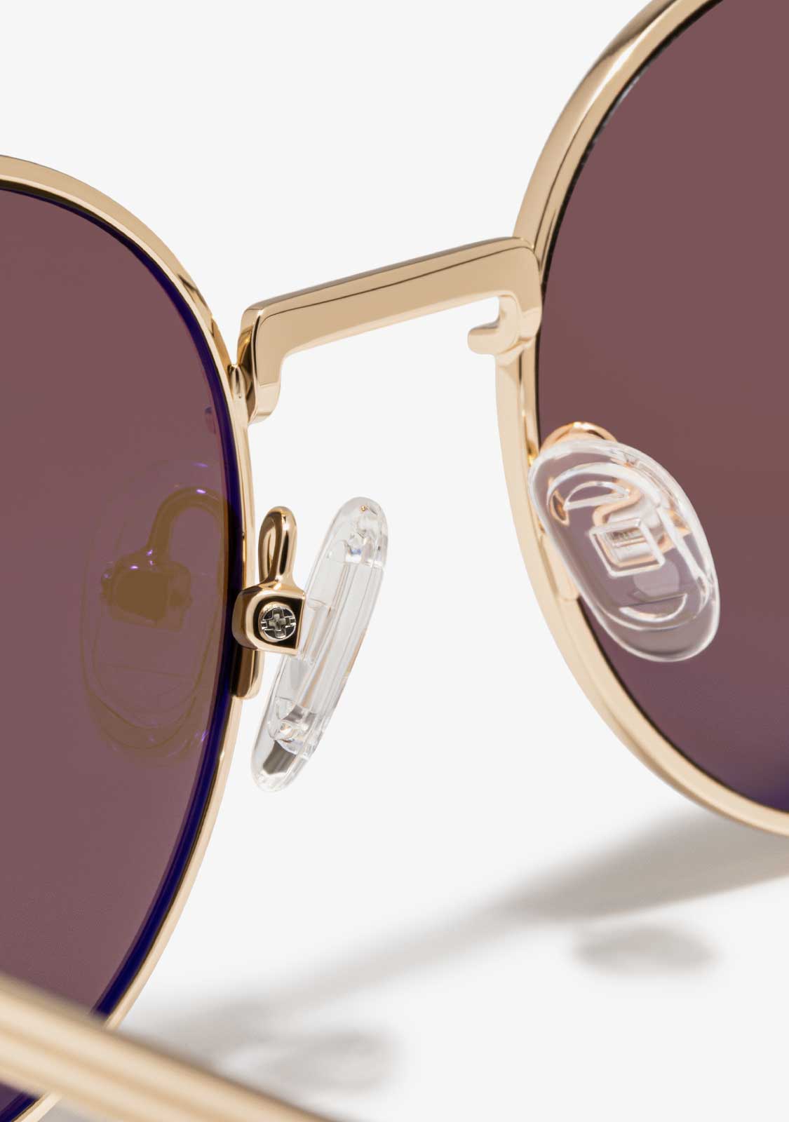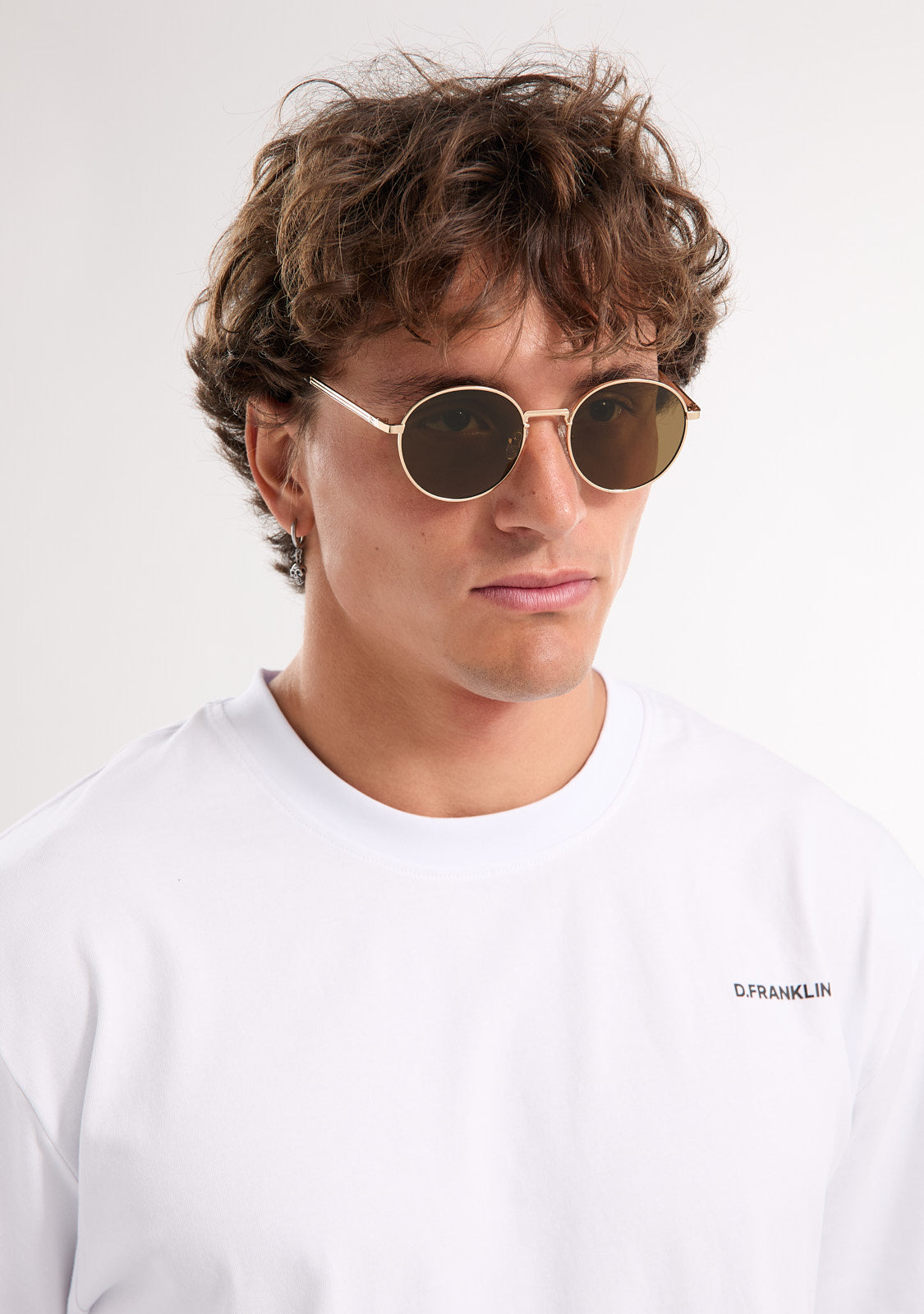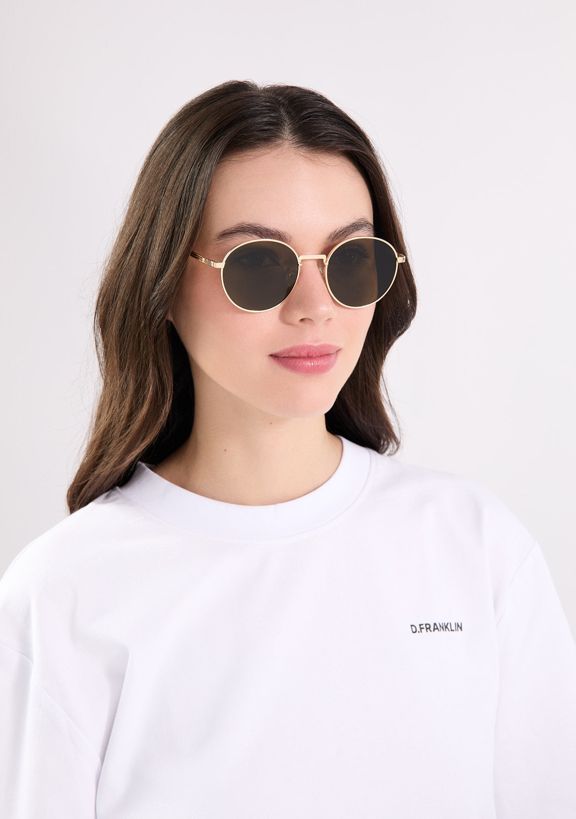 El diseño Round LX presenta un acabado metálico con estética ovalada. Su montura en tono dorado ha sido diseñada con unas lentes antirreflectantes de acabado marrón que permiten traspasar la mirada y definir las facciones. Su frontal es de 139 mm y su ancho de lente de 52 mm. Las patillas tienen una longitud de 140 mm y cuentan con nuestros detalles distintivos. Una pieza retro a la vez que minimalista con la que enmarcar cualquier estilismo.