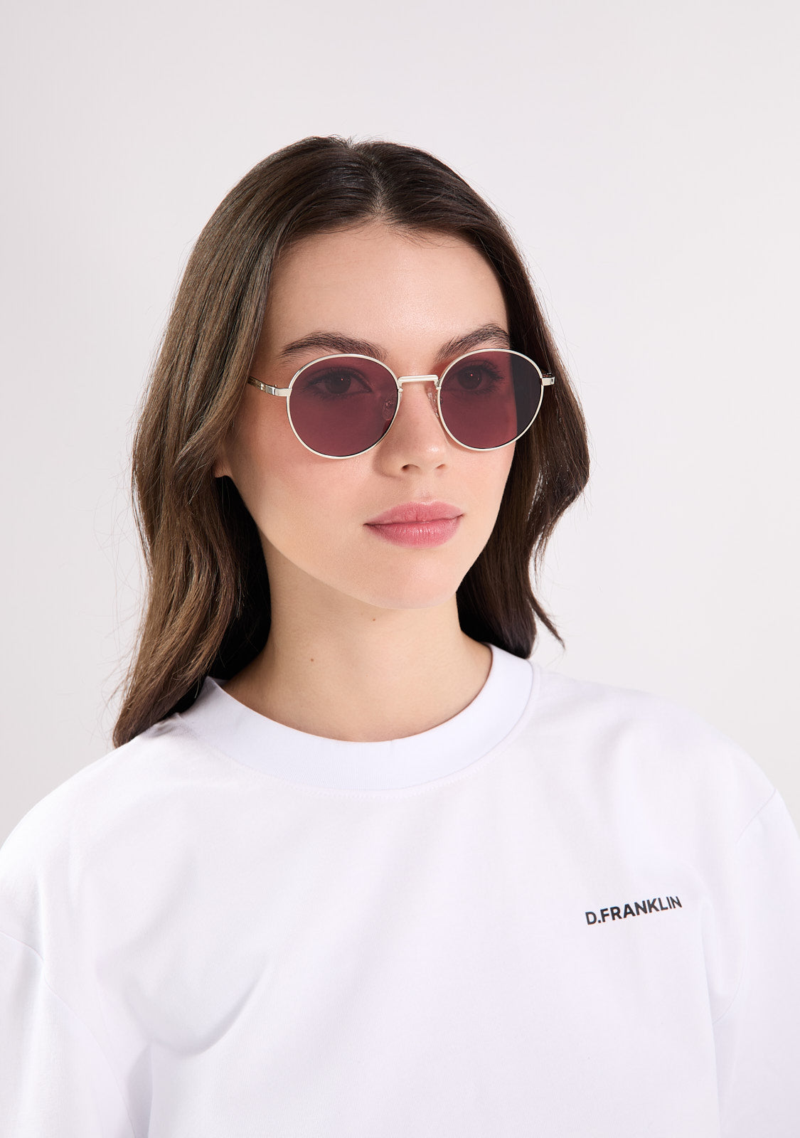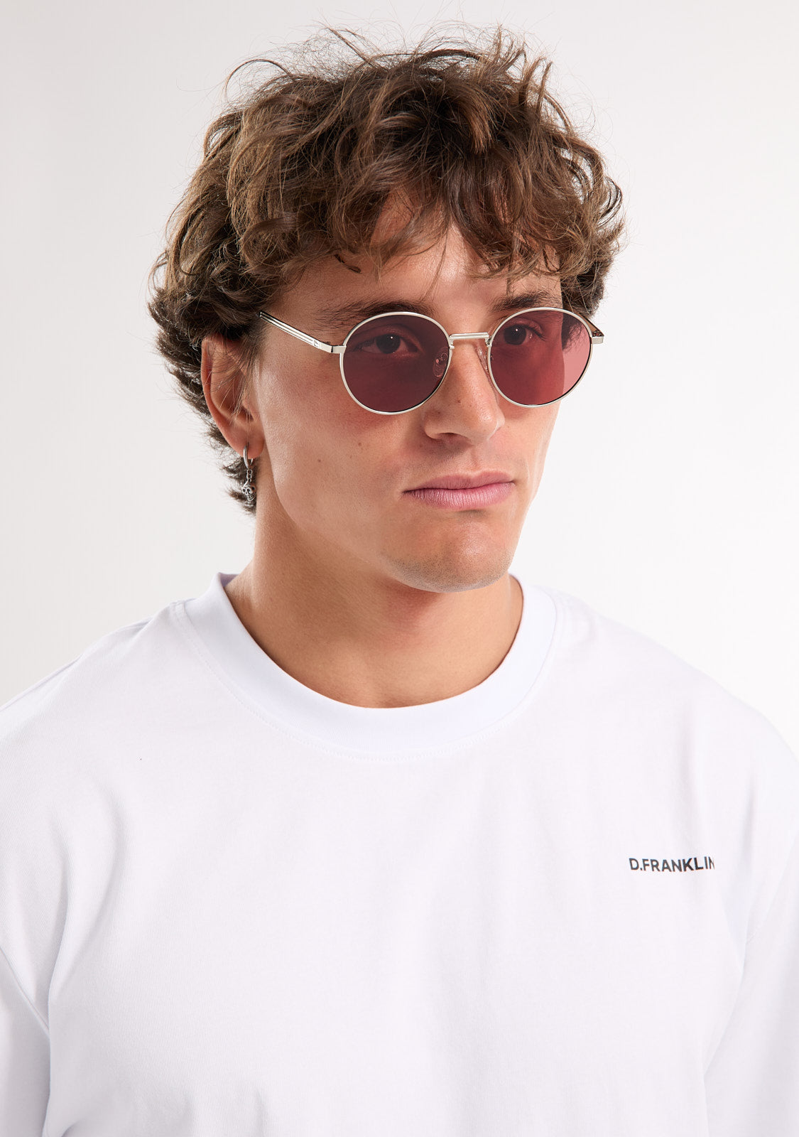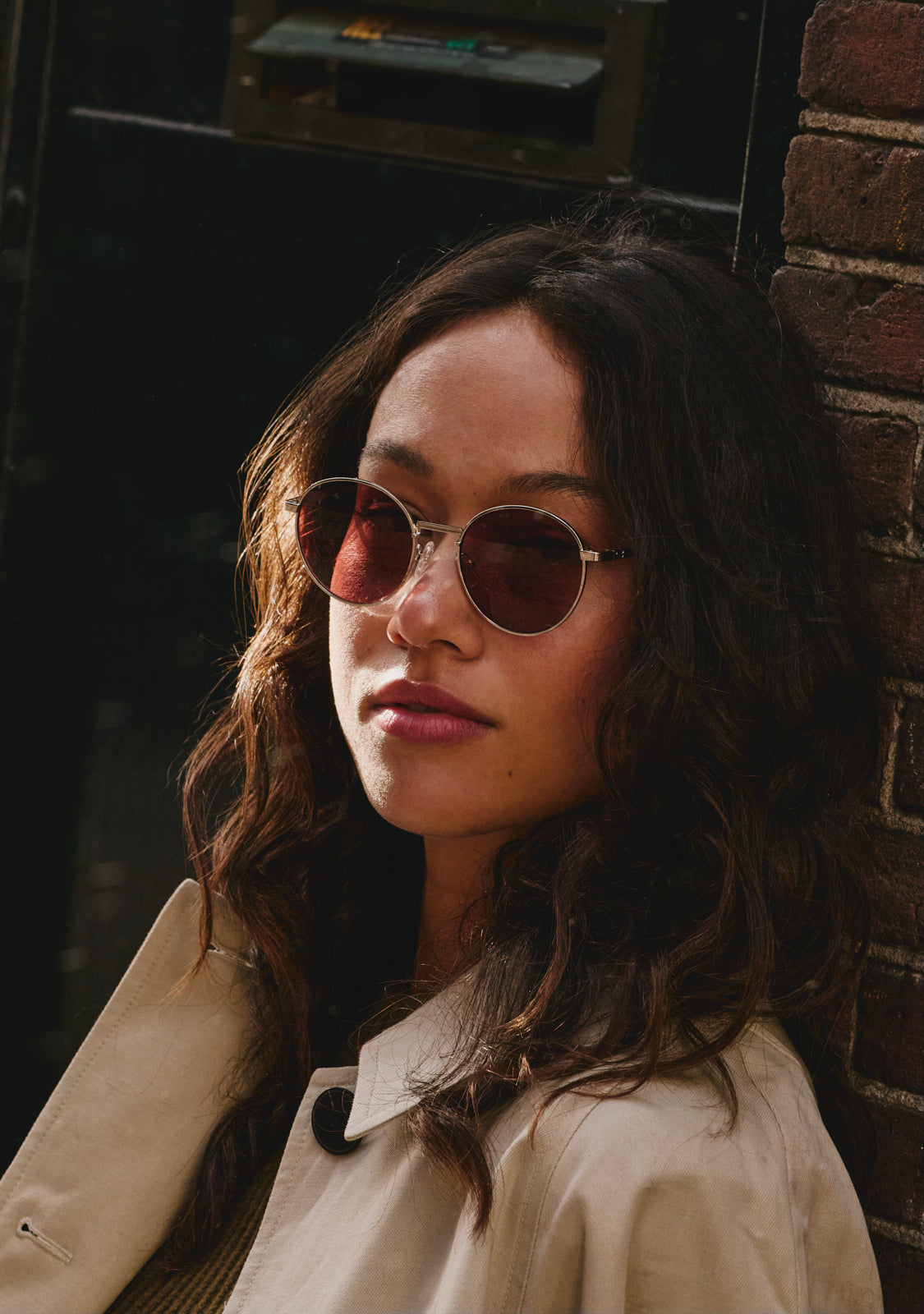 El diseño Round LX presenta un acabado metálico con estética ovalada. Su montura en tono plateado ha sido diseñada con unas lentes antirreflectantes de acabado rojo que permiten traspasar la mirada y definir las facciones. Su frontal es de 139 mm y su ancho de lente de 52 mm. Las patillas tienen una longitud de 140 mm y cuentan con nuestros detalles distintivos. Una pieza retro a la vez que minimalista con la que enmarcar cualquier estilismo.