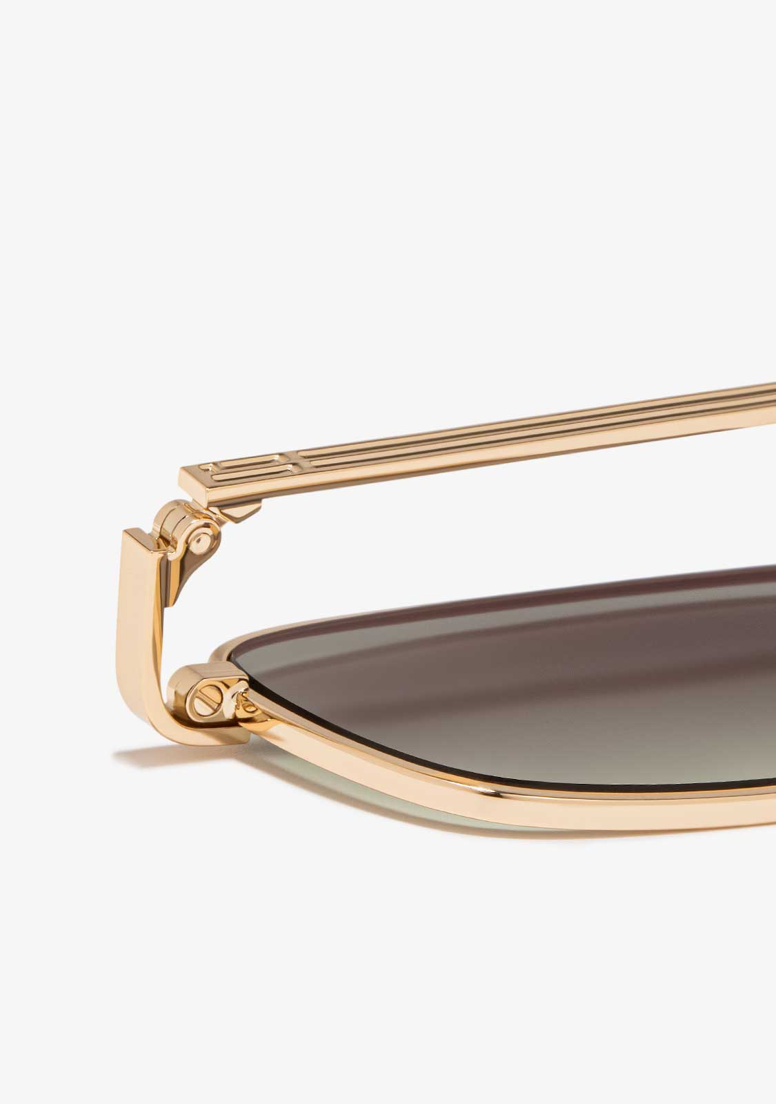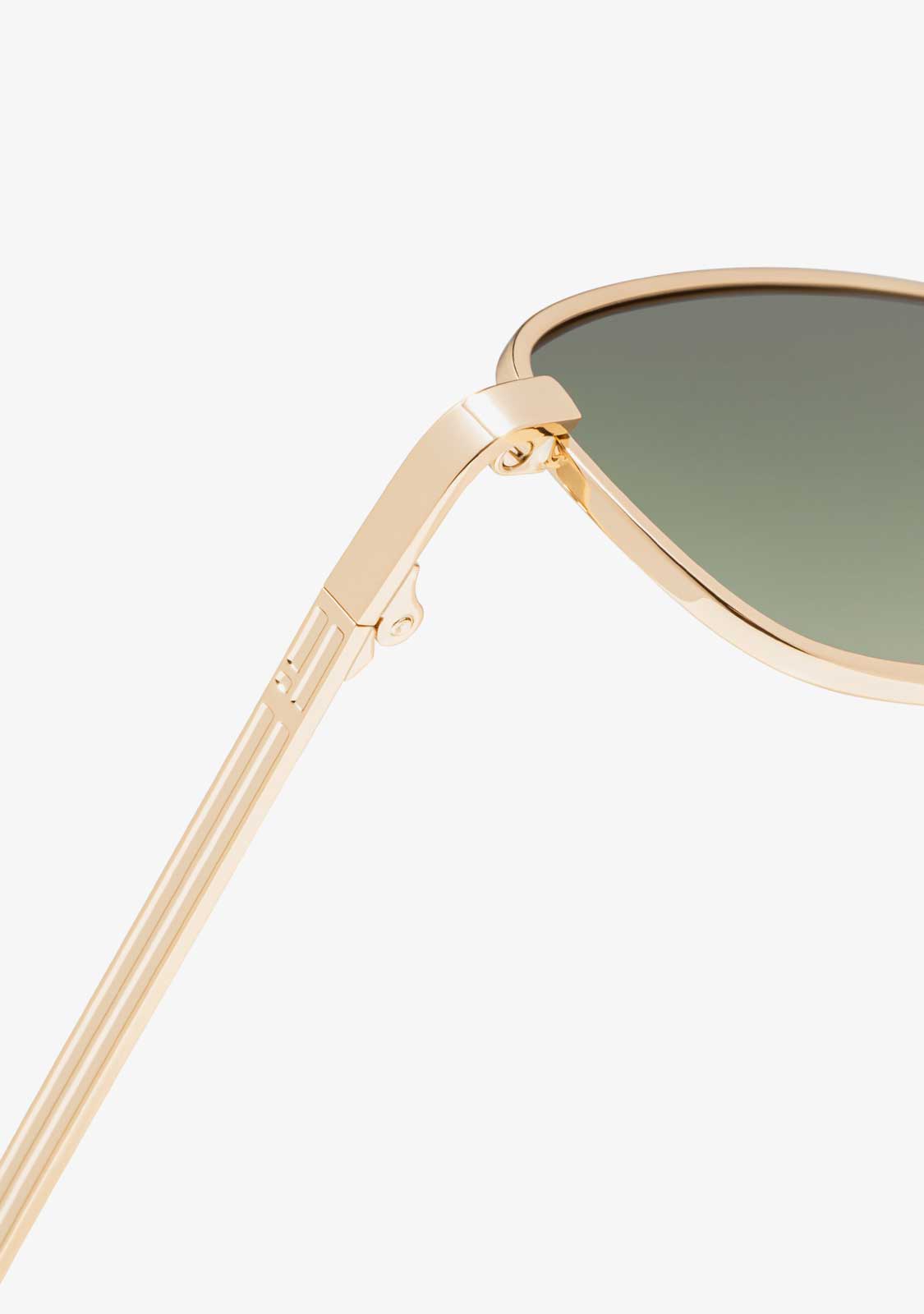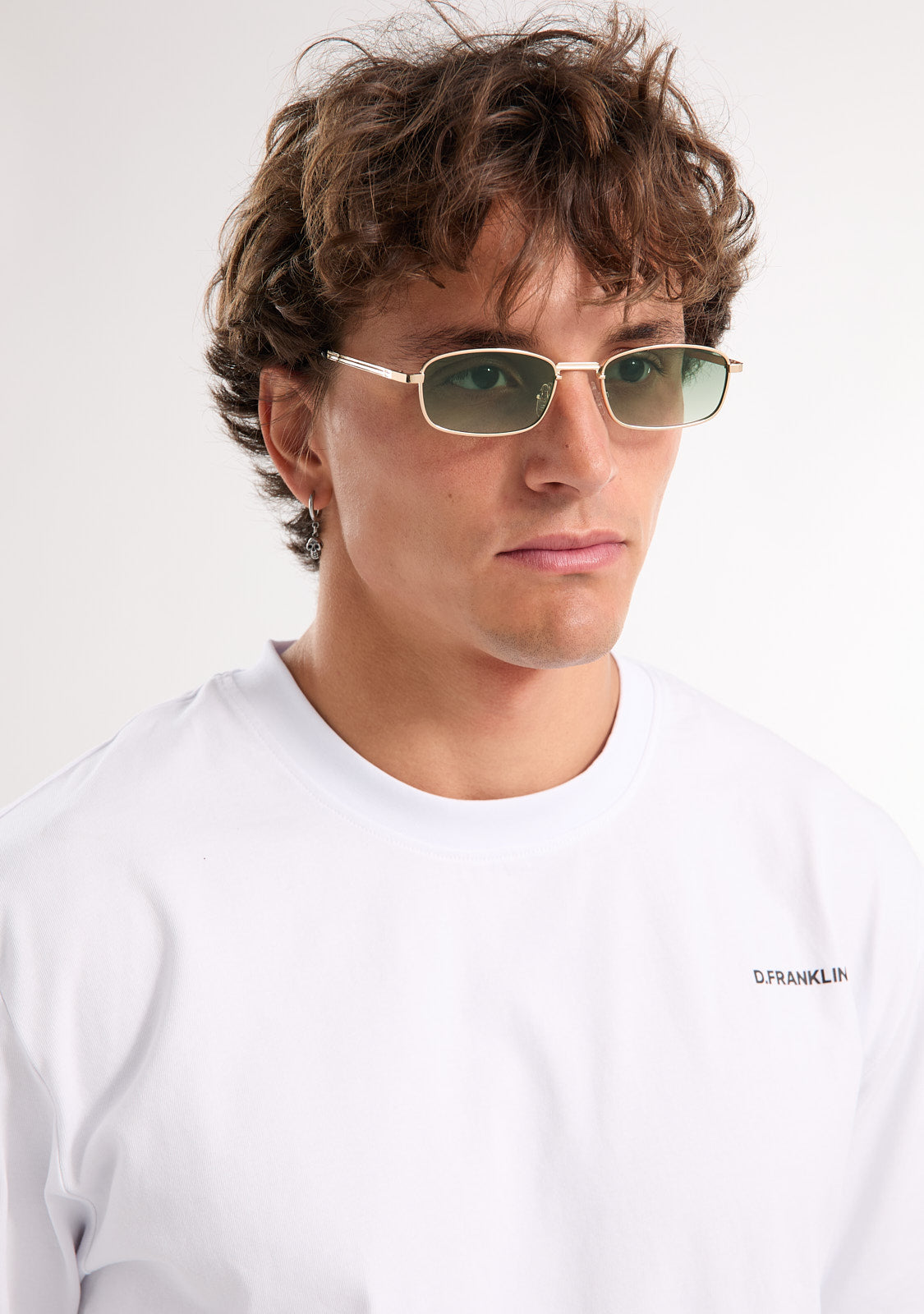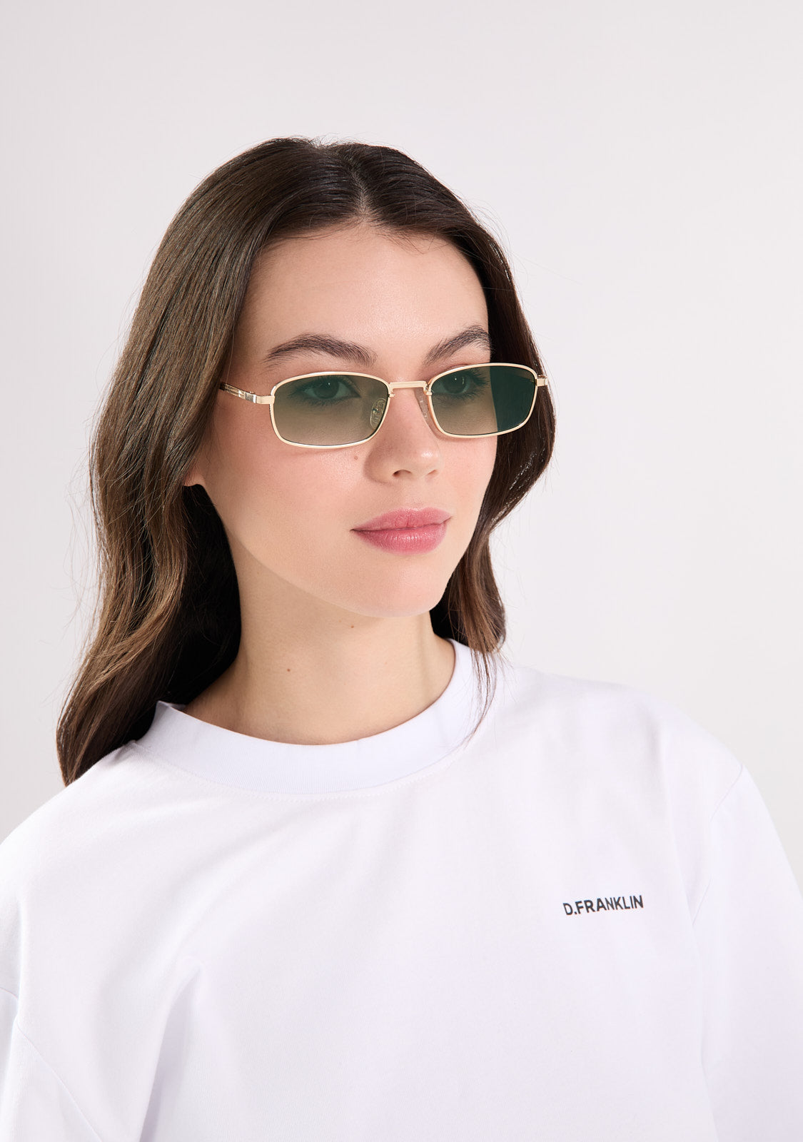El diseño Square LX presenta un acabado metálico con estética rectangular. Su montura en tono dorado ha sido diseñada con unas lentes antirreflectantes con degradado color verde que permiten traspasar la mirada y definir las facciones. Su frontal es de 142 mm y su ancho de lente de 56 mm. Las patillas tienen una longitud de 140 mm y cuentan con nuestros detalles distintivos. Una pieza retro a la vez que minimalista con la que enmarcar cualquier estilismo.