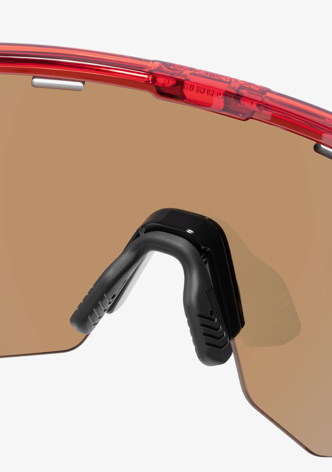 Con clasificación Categoría 3, son ideales para entrenamientos al aire libre — desde el ciclismo en carretera hasta los senderos de montaña. El diseño envolvente con curvatura 6C, las almohadillas nasales de goma y las puntas de las patillas antideslizantes garantizan total estabilidad incluso con sudor o lluvia.