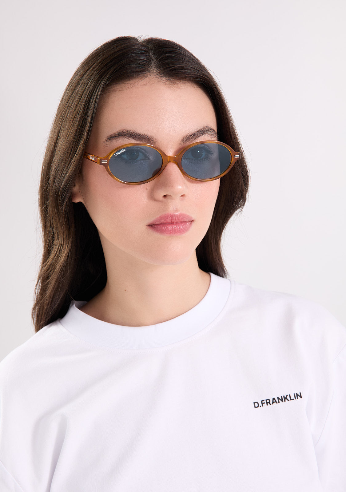 Descubre las Ultra Light Ellipse Amber Tort / Blue de D.Franklin, unas gafas de sol diseñadas para quienes buscan combinar estilo y funcionalidad en un accesorio único. Su frontal y puente de TR90, un material ultraligero y resistente, junto con las varillas de acetato, garantizan una estructura duradera y un ajuste cómodo para un uso prolongado.