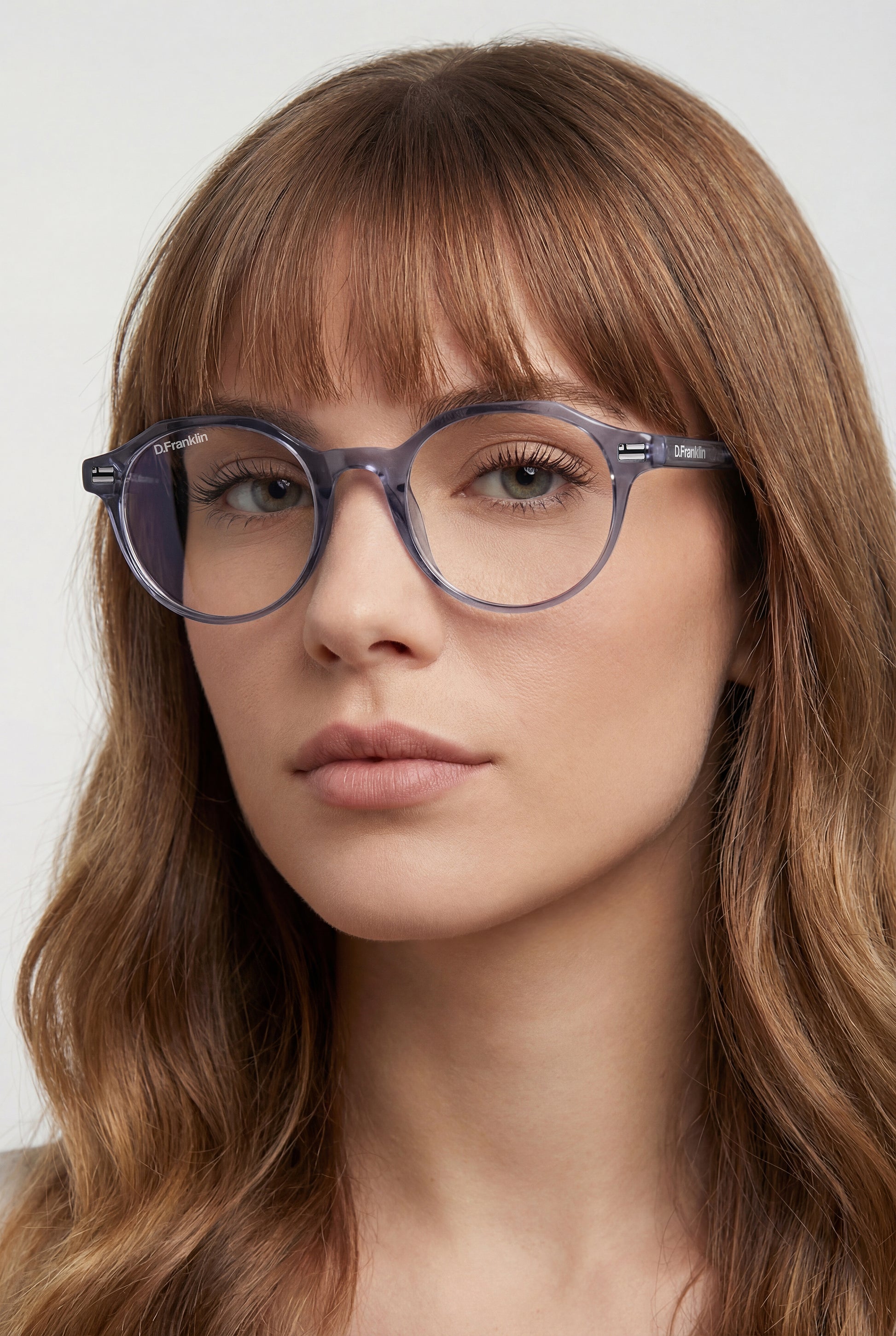 Los Ultra Light S Round Full Photochromic Blue / Blue: Diseñados para el uso diario, estos lentes combinan UV400, categoría 2, filtro bloqueador de luz azul y lentes y montura fotocromáticos que cambian de transparentes a grises según las condiciones de luz.