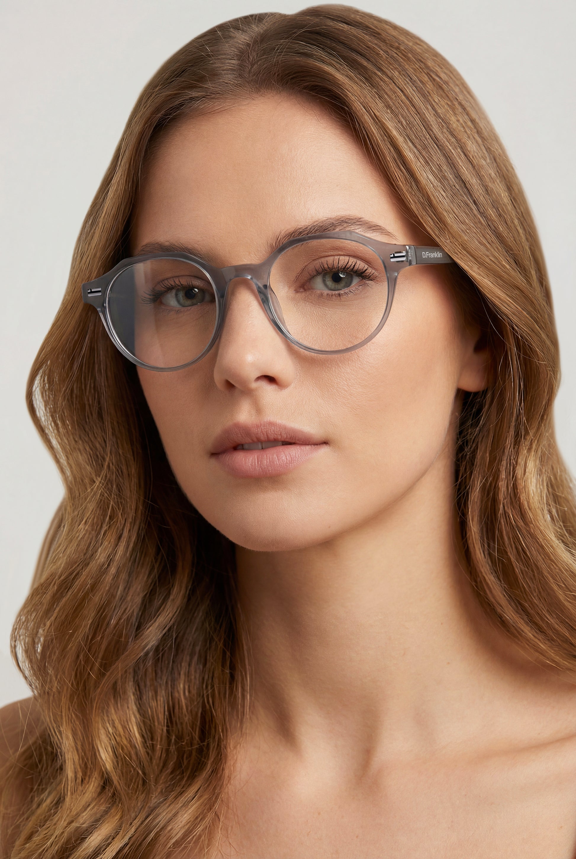 Los Ultra Light S Round Full Photochromic Grey / Grey: Diseñados para el uso diario, estos lentes combinan UV400, categoría 2, filtro bloqueador de luz azul y lentes y montura fotocromáticos que cambian de transparentes a grises según las condiciones de luz.