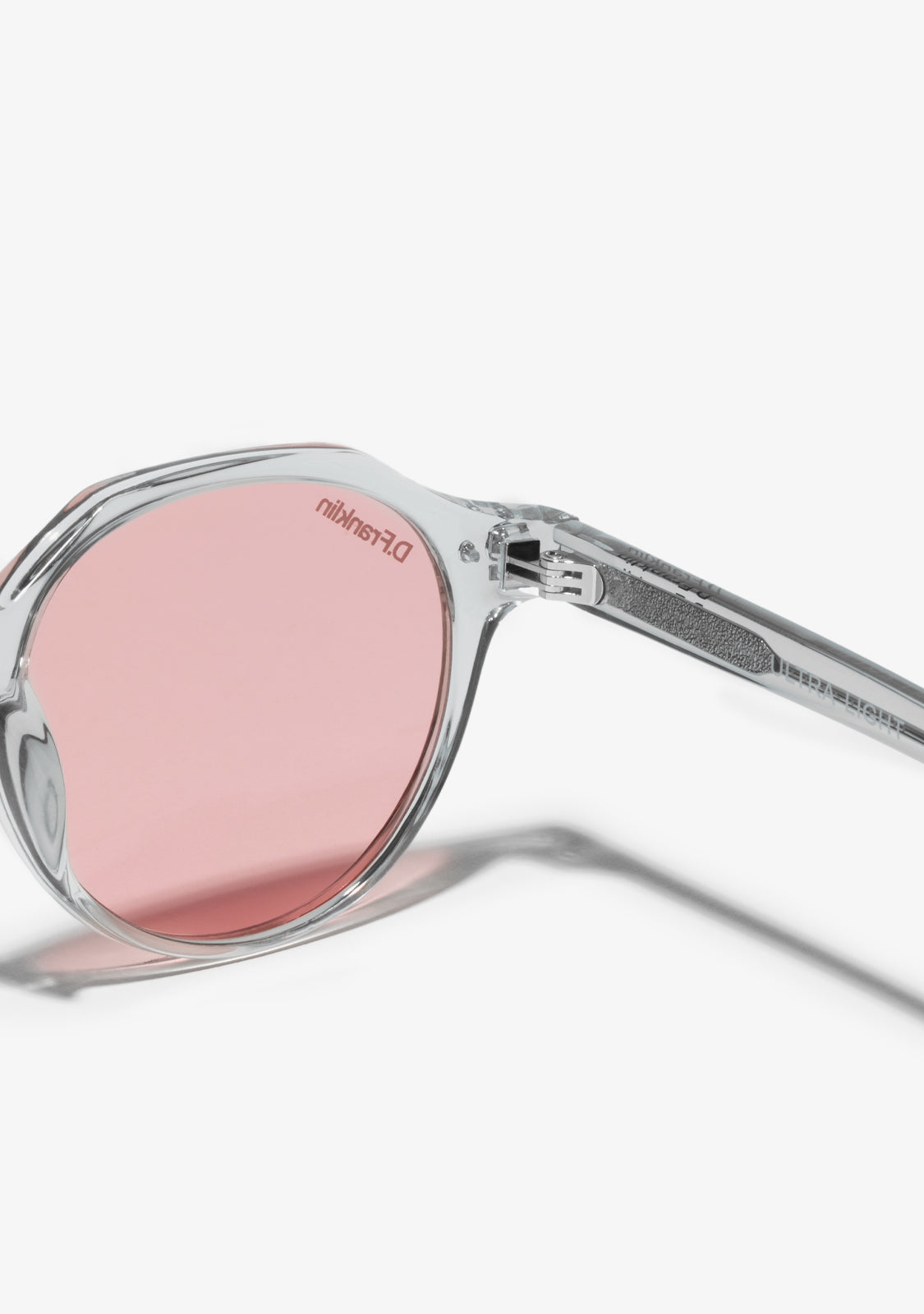 Sus lentes redondas ahumadas en rojo y montura TR90 transparentes destacan la atemporalidad de este modelo, con un toque diferente. Cuenta con nuestros detalles distintivos D.Franklin: el logo grabado en ambas varillas metálicas y nuestro emblema en la lente derecha. Con un ancho de lente de 47 mm y una montura frontal de 138 mm, estas lentes favorecen a la mayoría de los rostros. Las varillas laterales tienen una longitud de 145 mm.