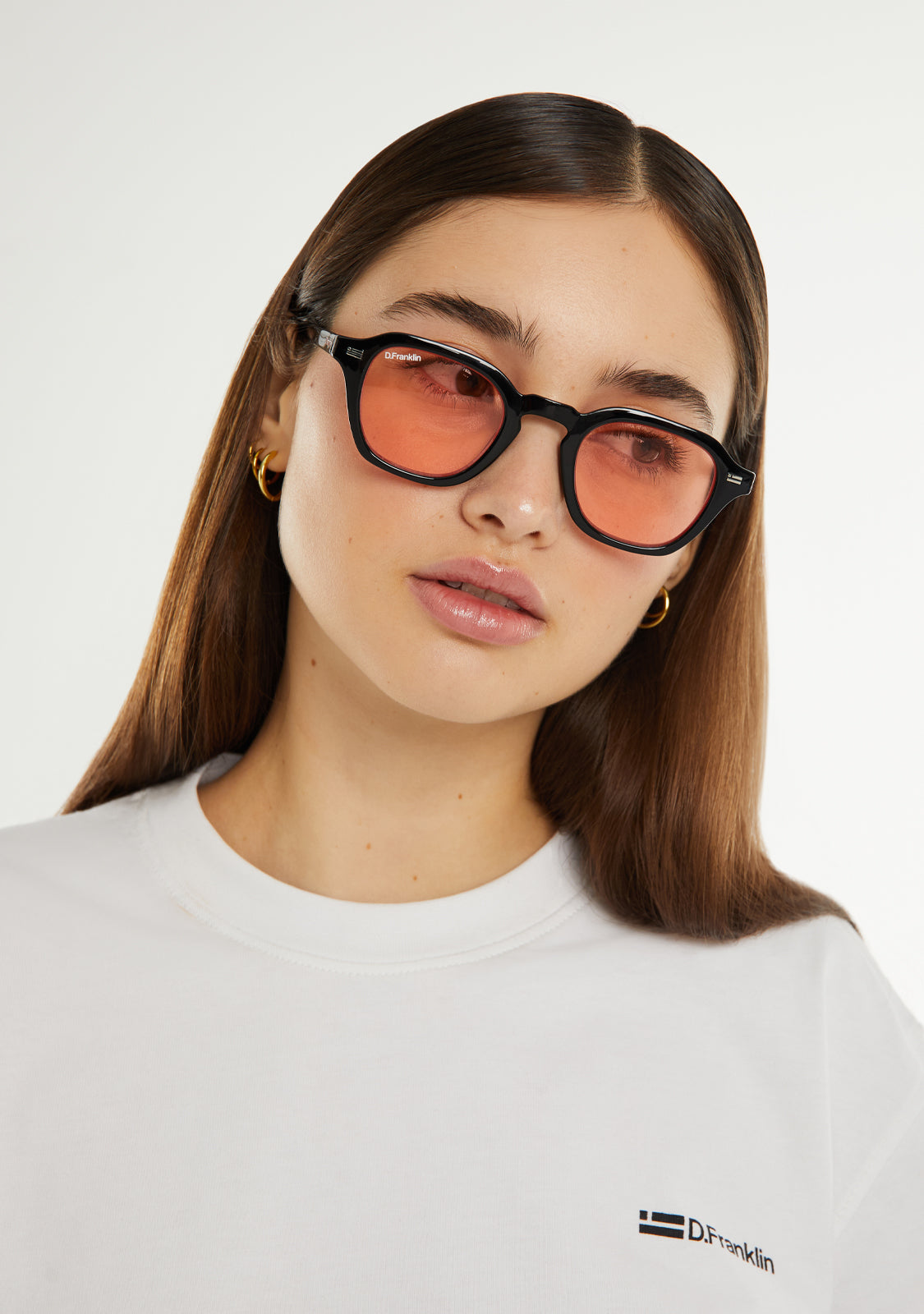 Nuestro modelo Ultra Light S Square con acabado en negro cuenta con nuestros detalles distintivos de D.Franklin: logo grabado en ambas varillas y nuestro emblema en la lente derecha. Su ancho de lente es de 46 mm y su frontal de 140.5 mm. Las varillas laterales tienen una longitud de 145 mm.